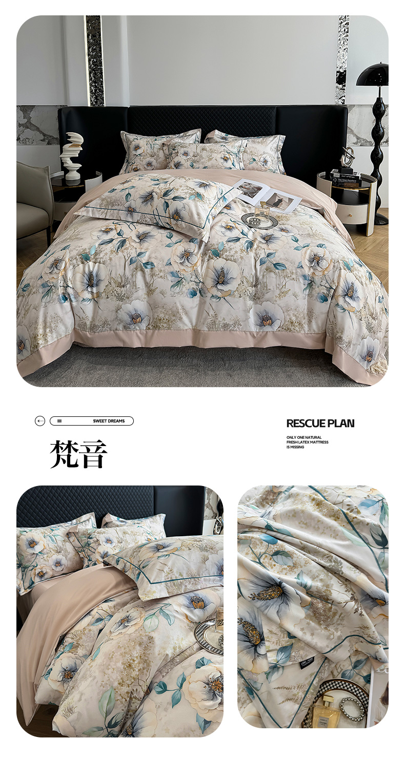 (总)棠颂 2025新款s莱赛尔天丝数码印花四件套(礼盒款),南枝,清欢,香蜜,云溪,逐光