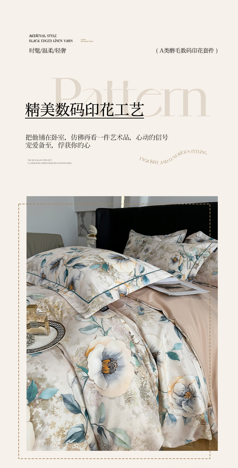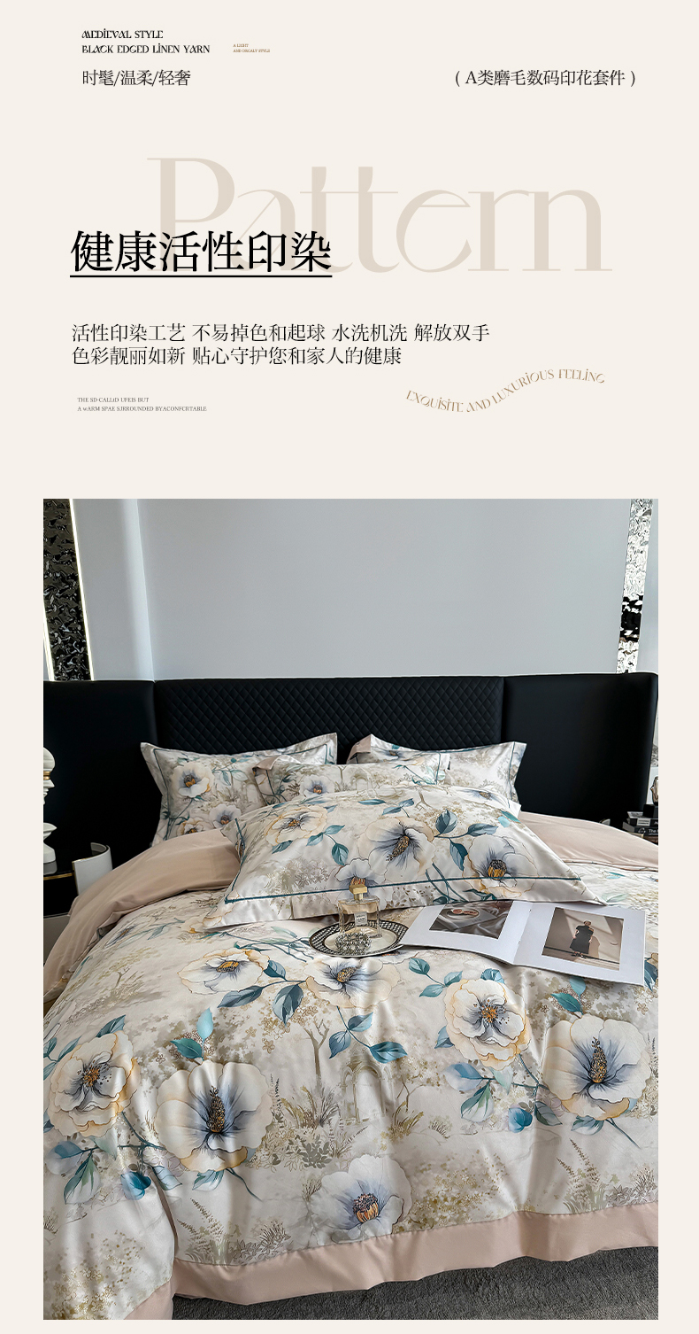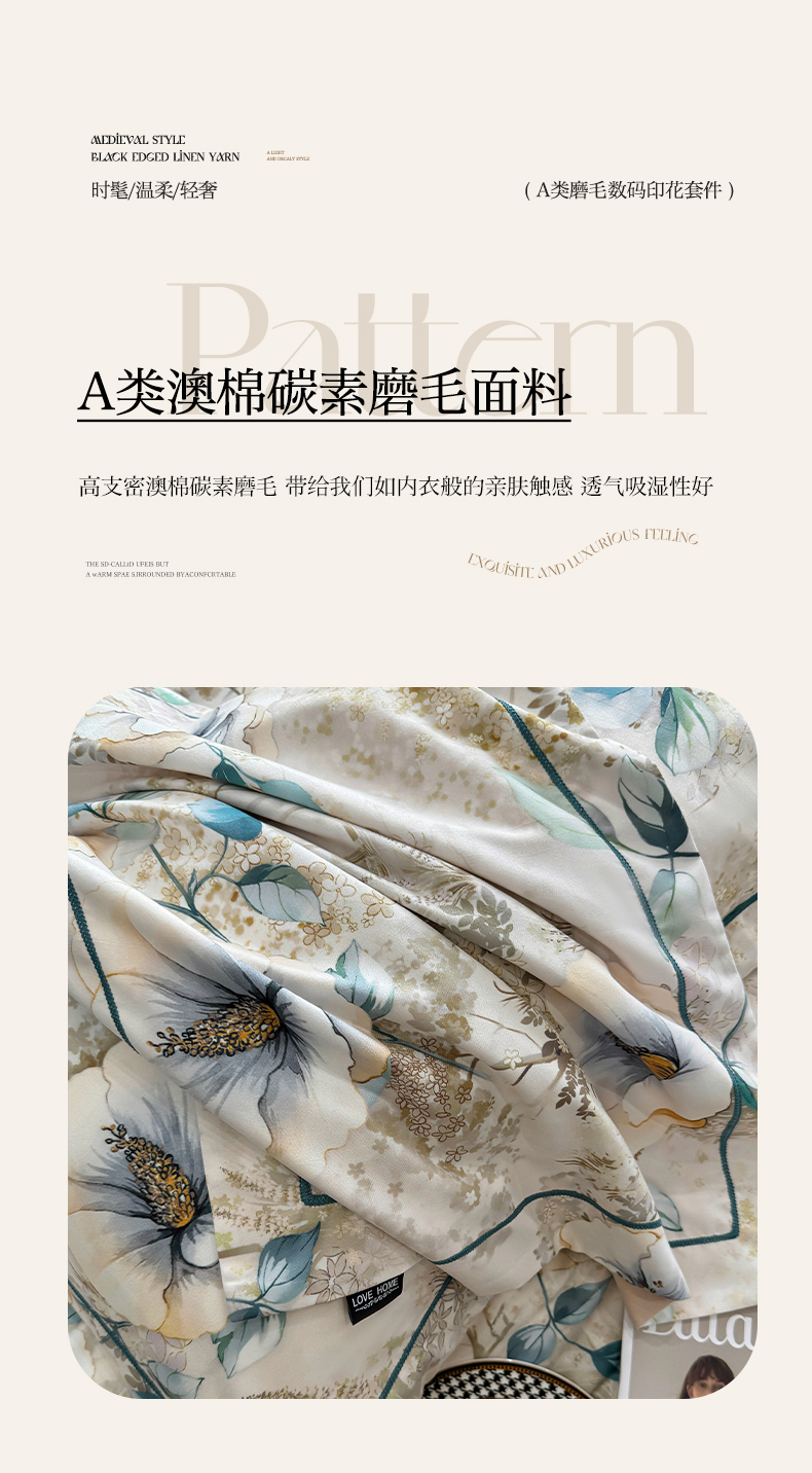商品名称:棠颂家纺 2025新款澳棉加厚磨毛数码印花四件套(礼盒款) 梵音
