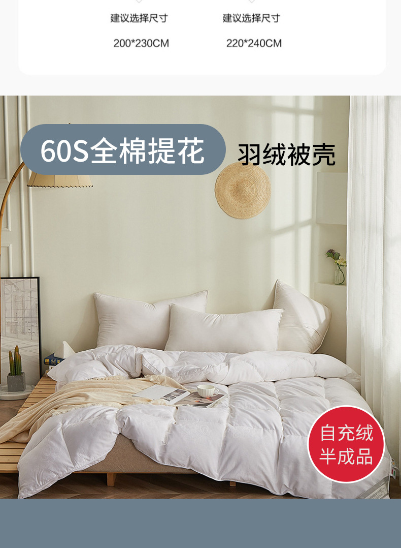 商品名称:(总)颐羽达 加工定制60s全棉双层提花鹅绒被被壳 自充绒羽绒被半成品被壳