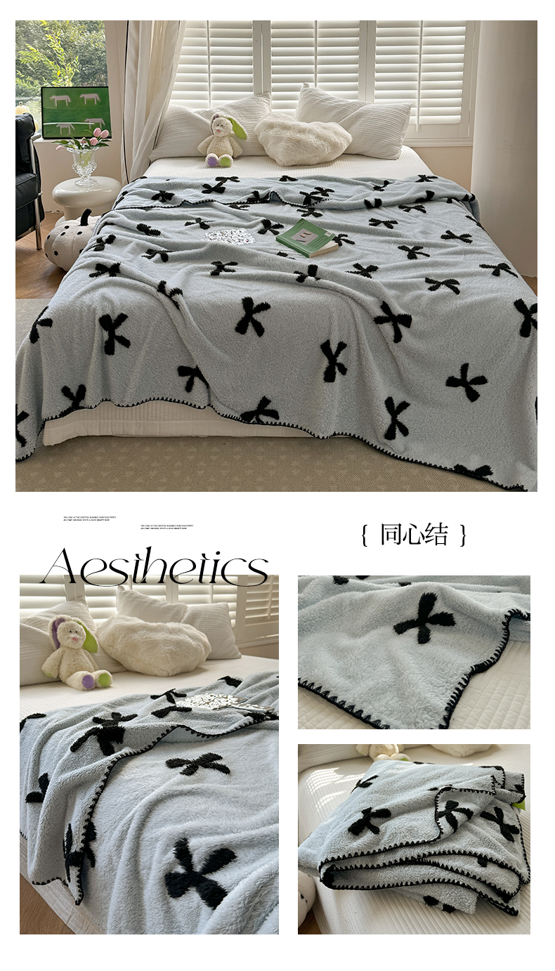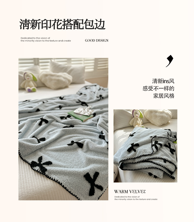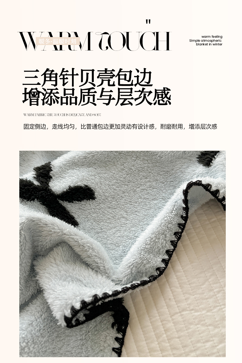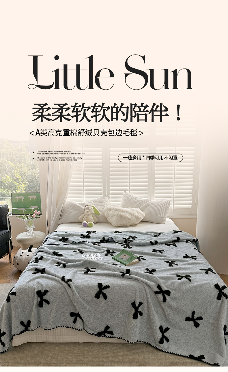 吉象家纺 2024新款A类高克重棉舒绒贝壳包边毛毯 同心结