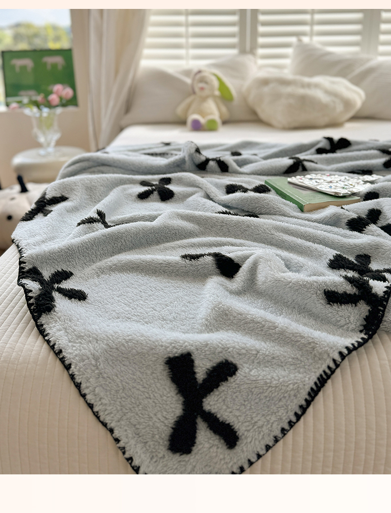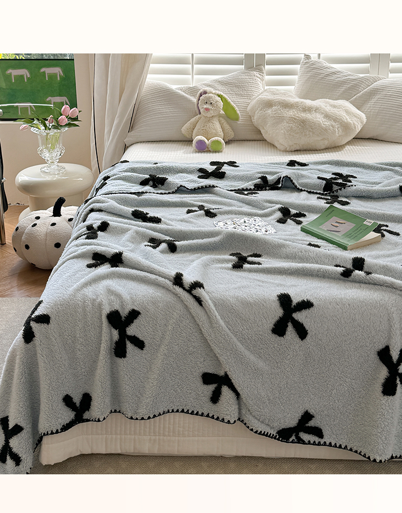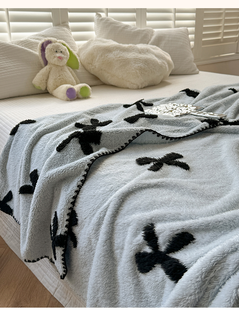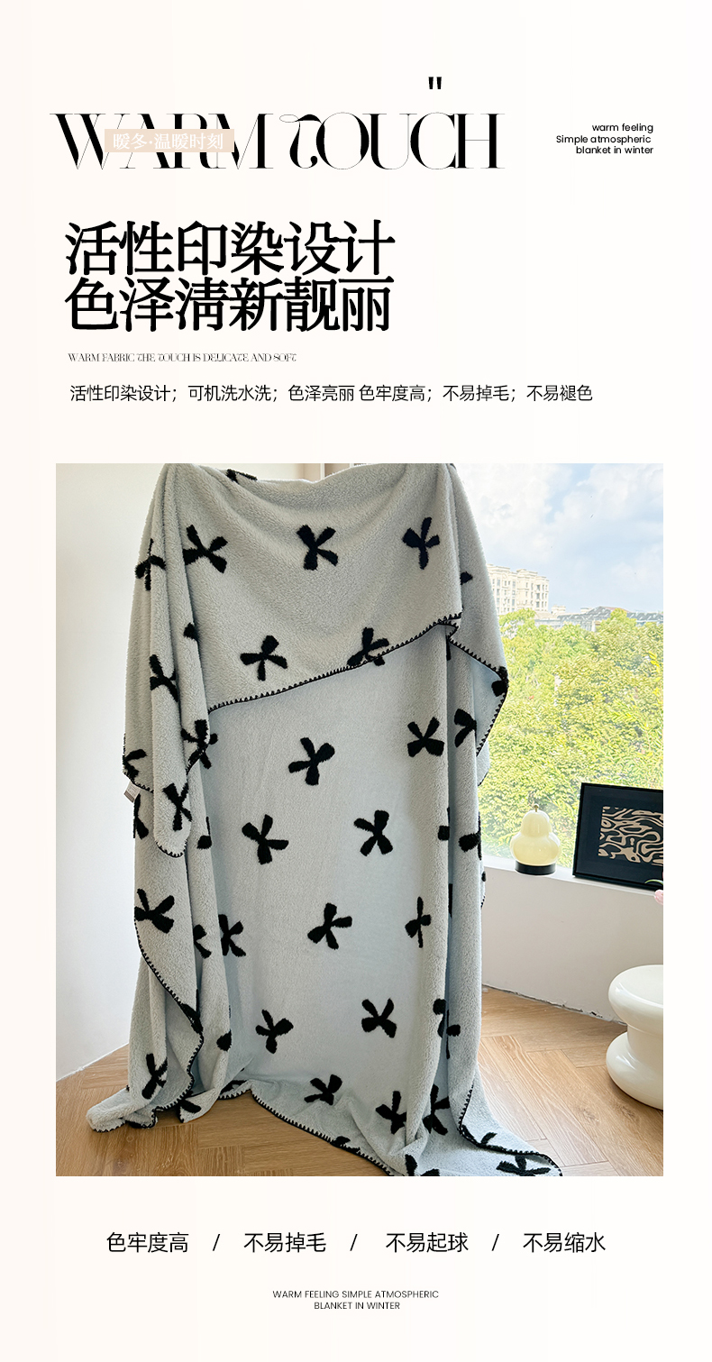 吉象家纺 2024新款A类高克重棉舒绒贝壳包边毛毯 同心结