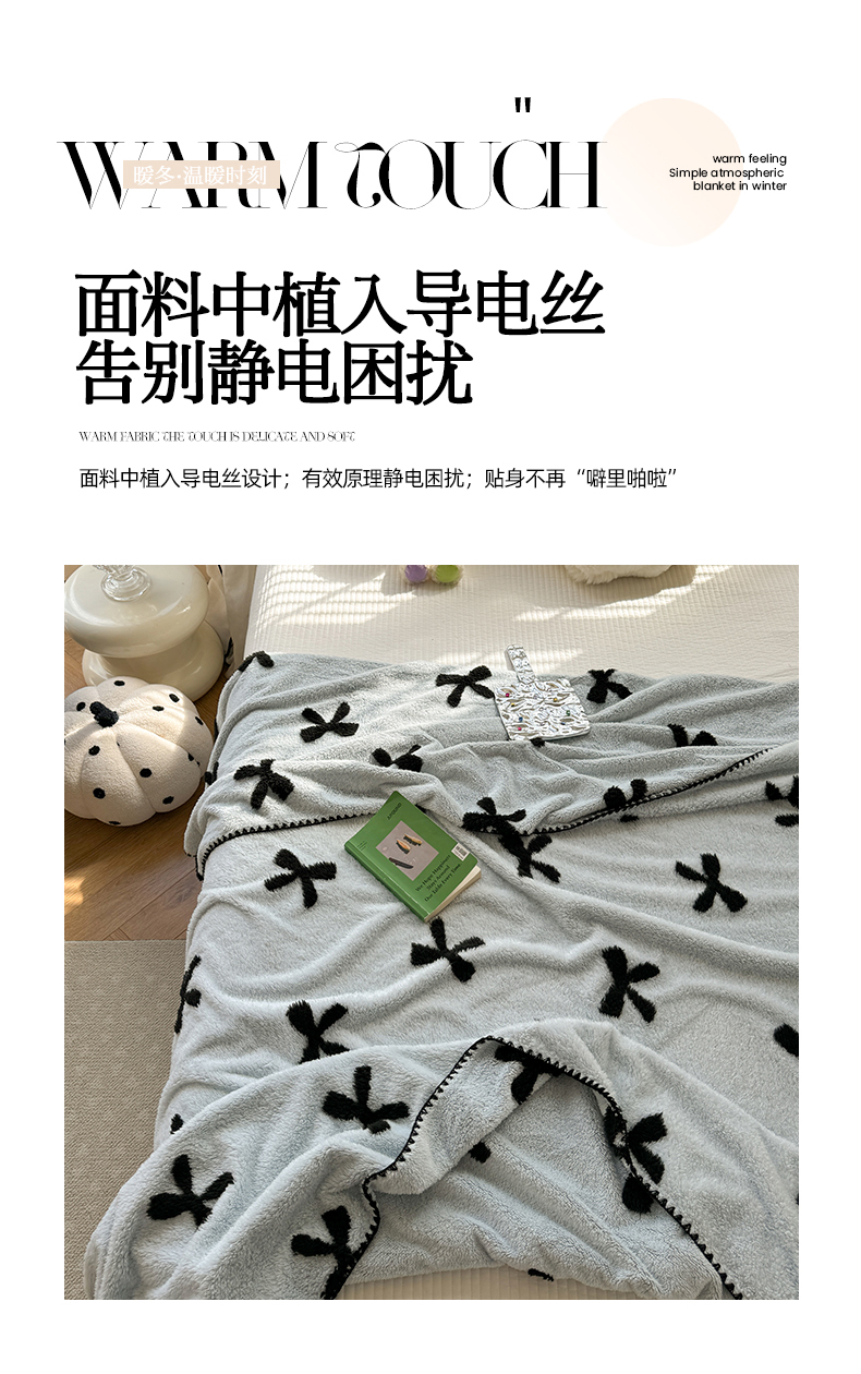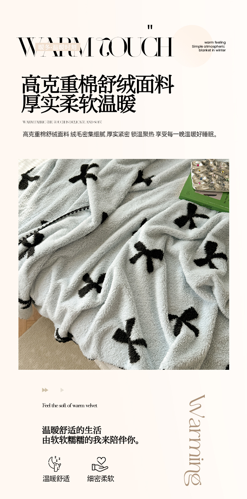 商品名称:吉象家纺 2024新款A类高克重棉舒绒贝壳包边毛毯 同心结