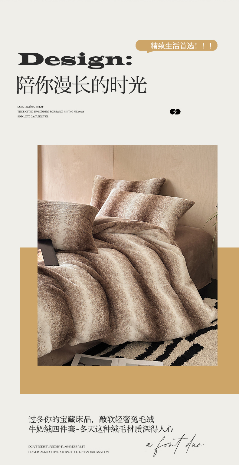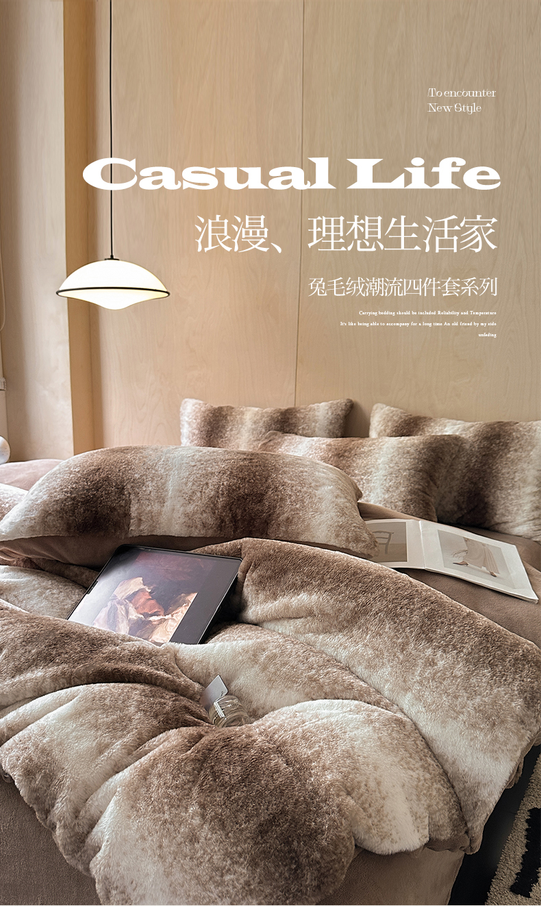 商品名称:798家纺 2025新款兔毛潮流四件套系列-艾里 艾里-咖