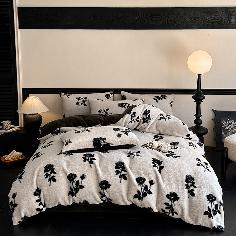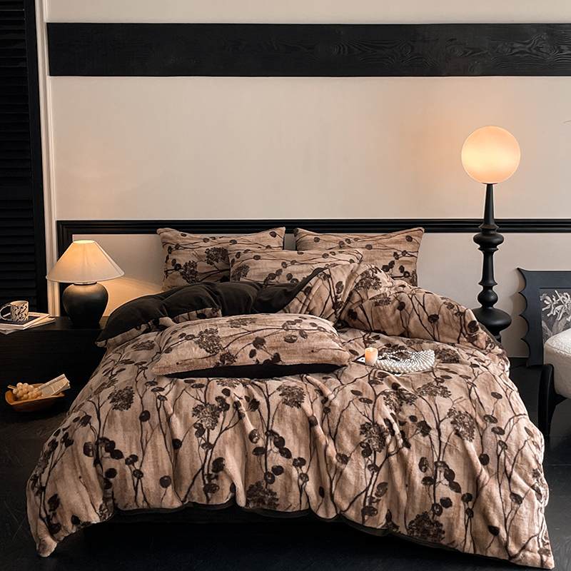 798家纺 2025新款兔毛印花四件套美拉德系列 美拉德-豹纹灰