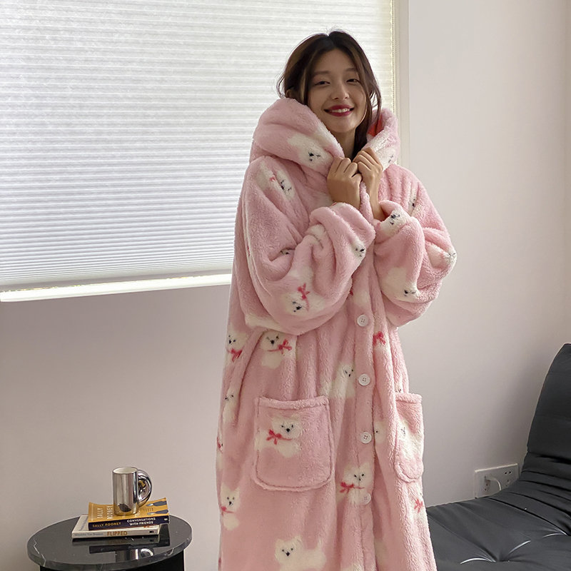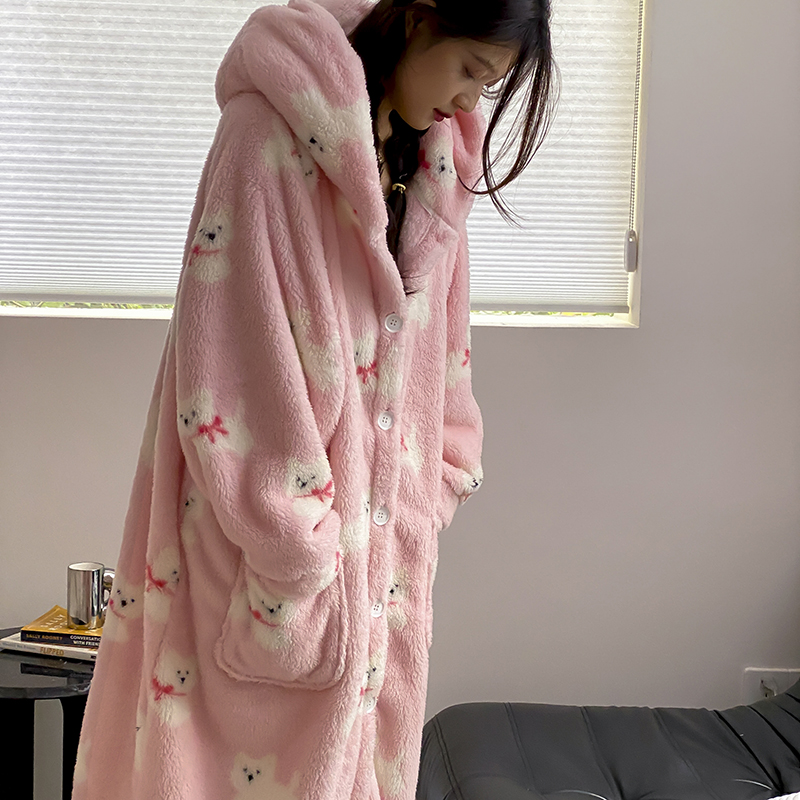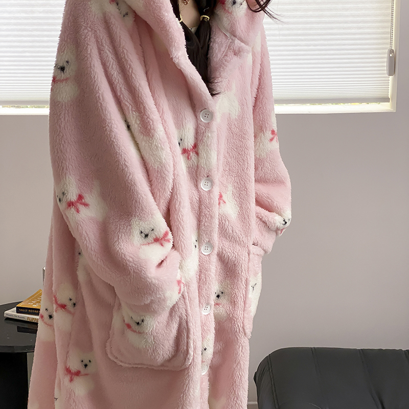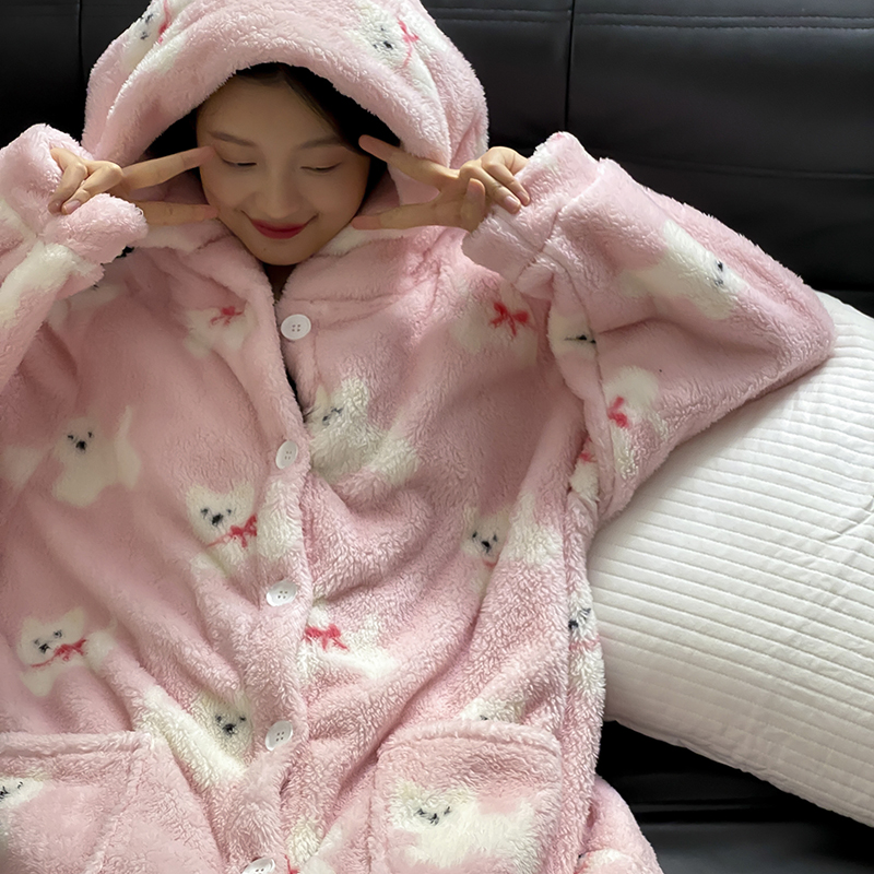 商品名称:2024新款亲肤舒适卡通可爱摇粒绒睡衣 粉蝴蝶结小狗