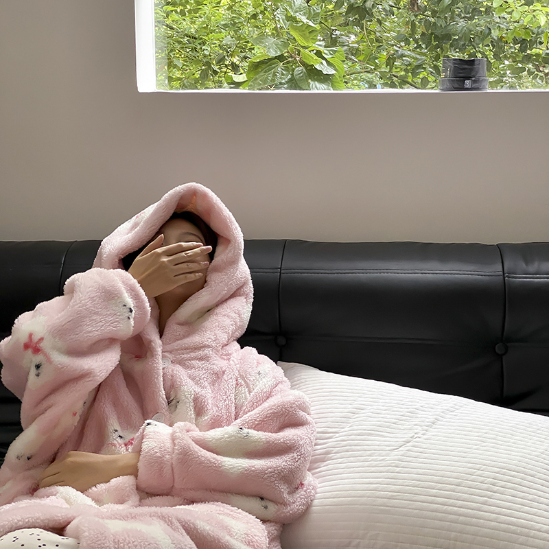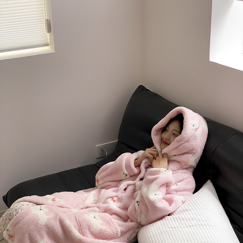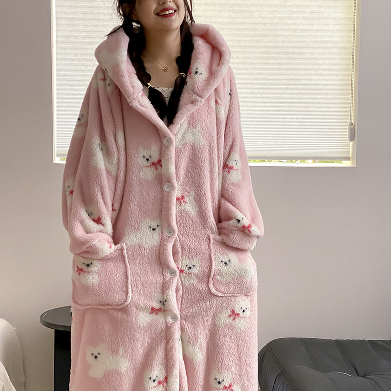 2024新款亲肤舒适卡通可爱摇粒绒睡衣 粉蝴蝶结小狗