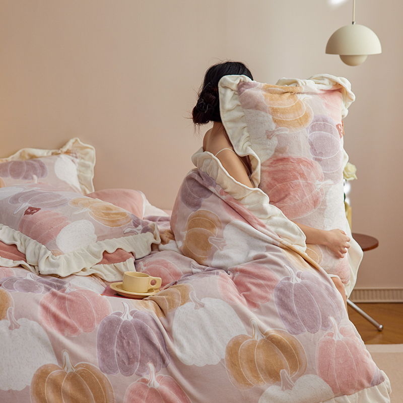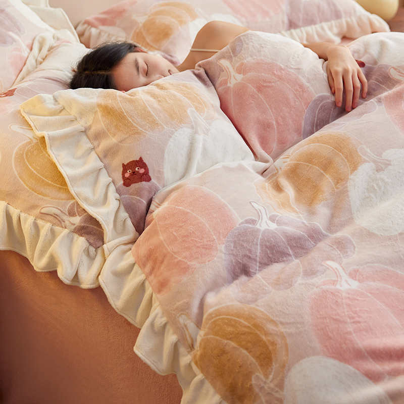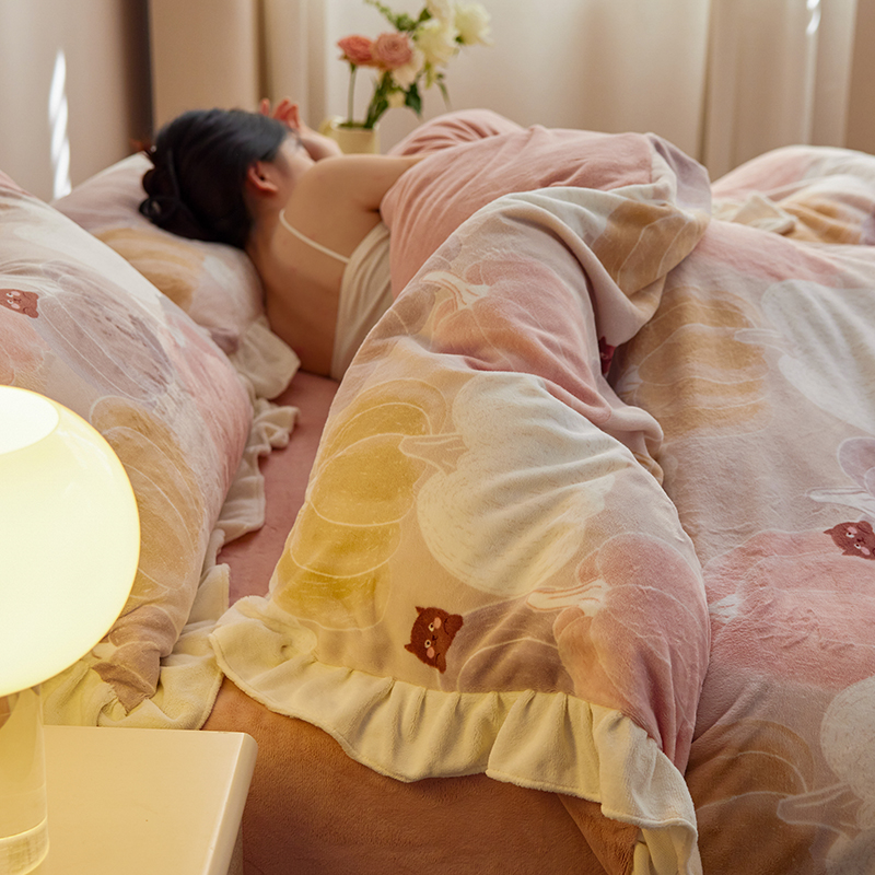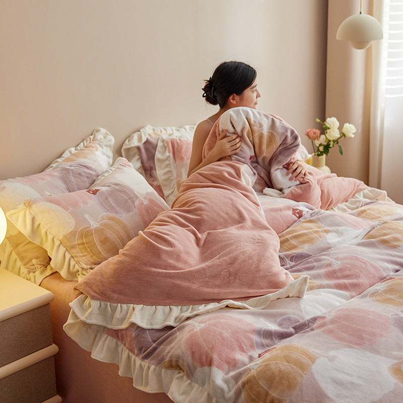 商品名称:2024新款240g全消光印花花边绒四件套 满福