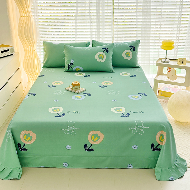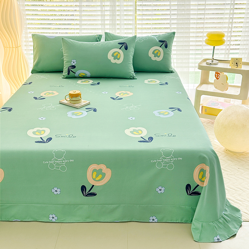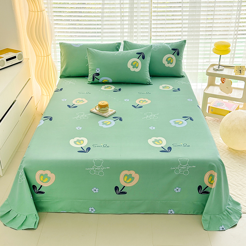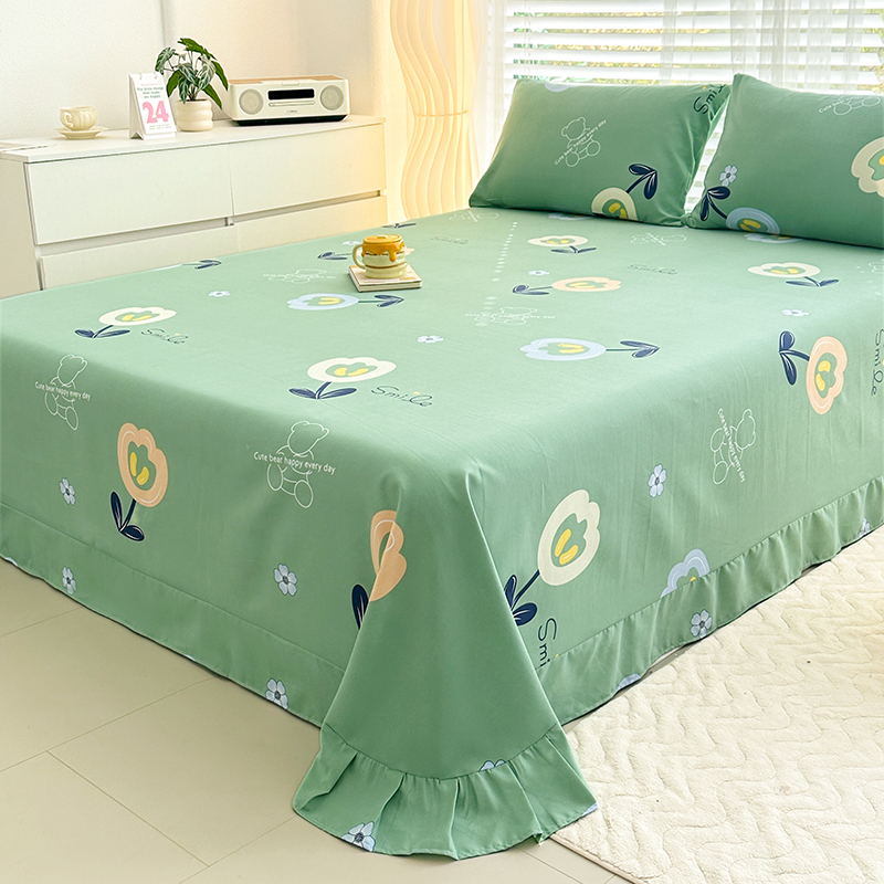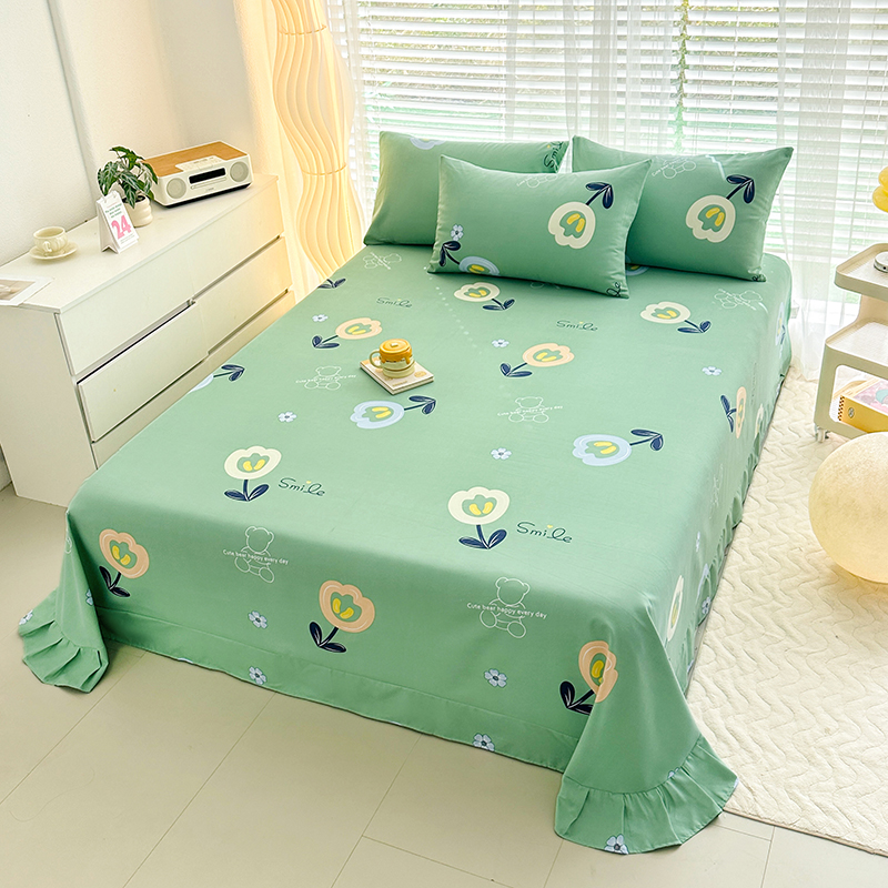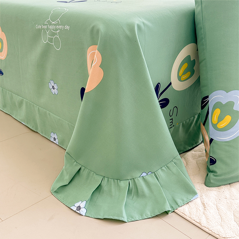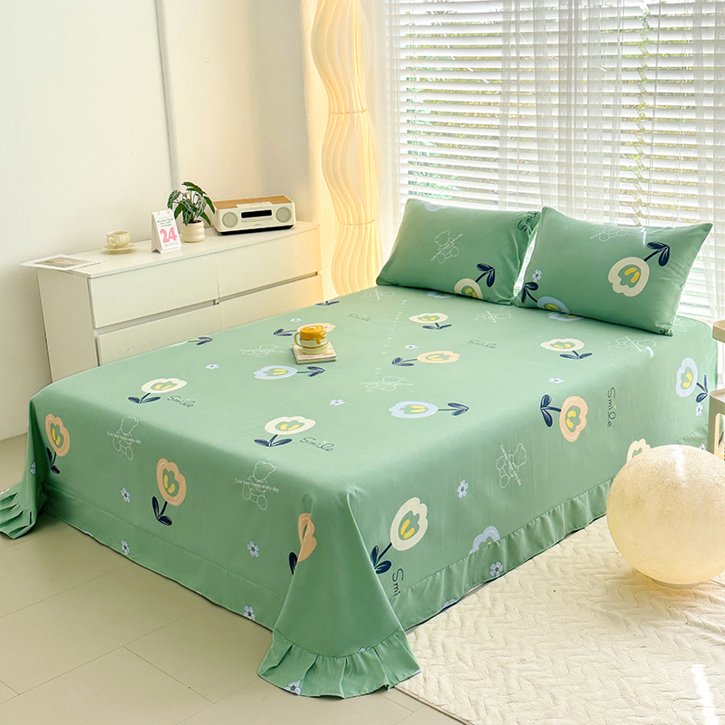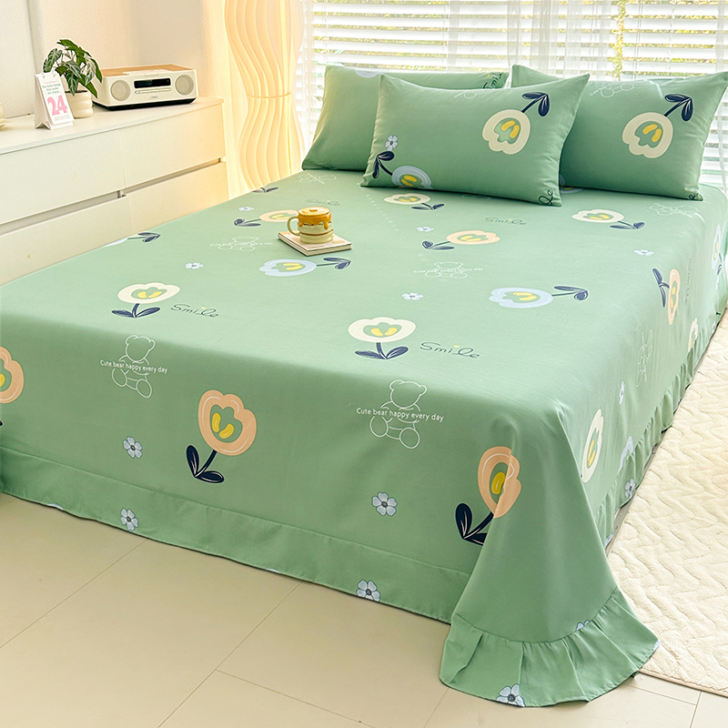 家贝爱 2024新款加厚原棉磨毛花边床单 花季物语