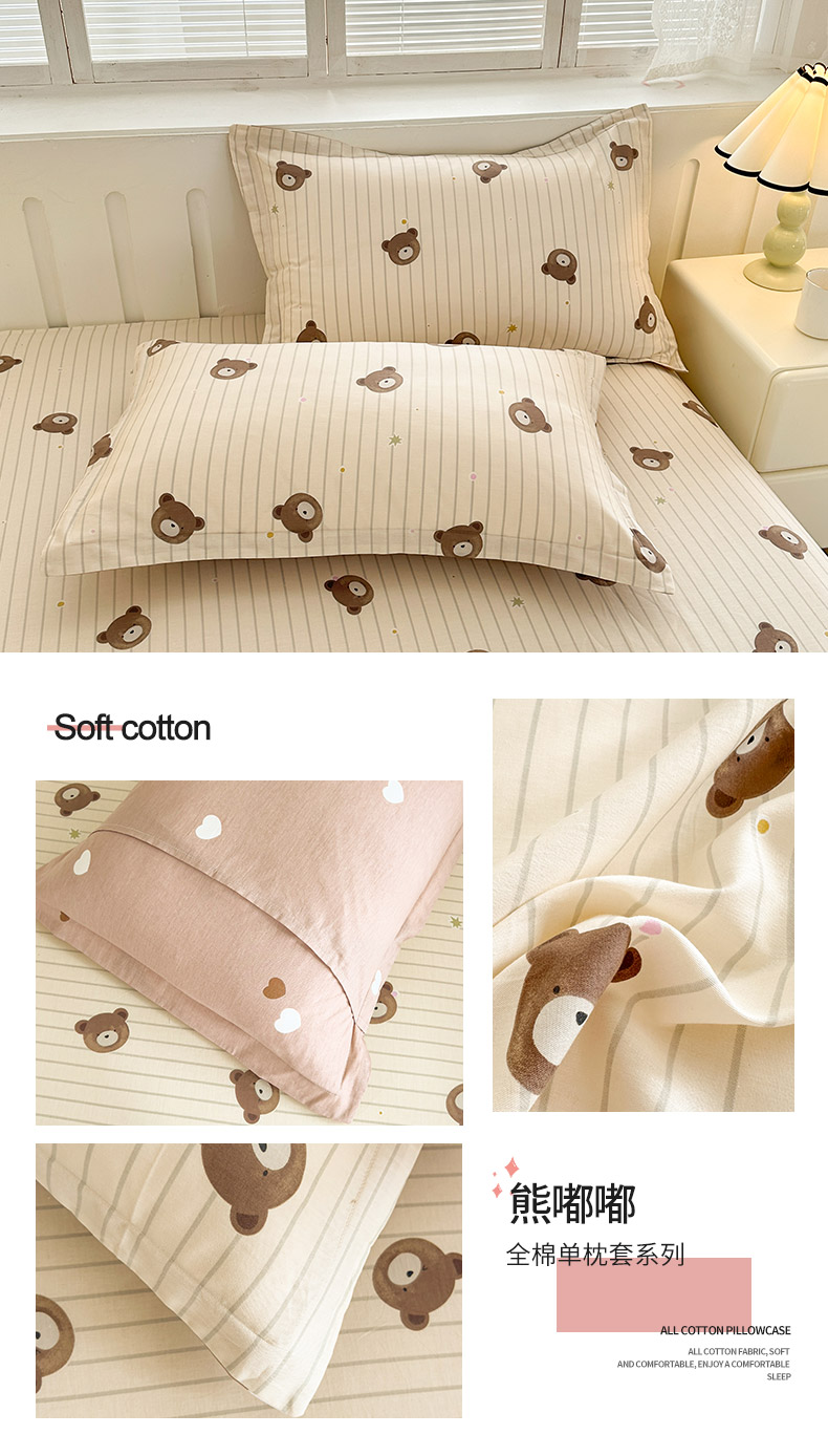 绵庭家纺 2025新款全棉印花单枕套系列 熊嘟嘟