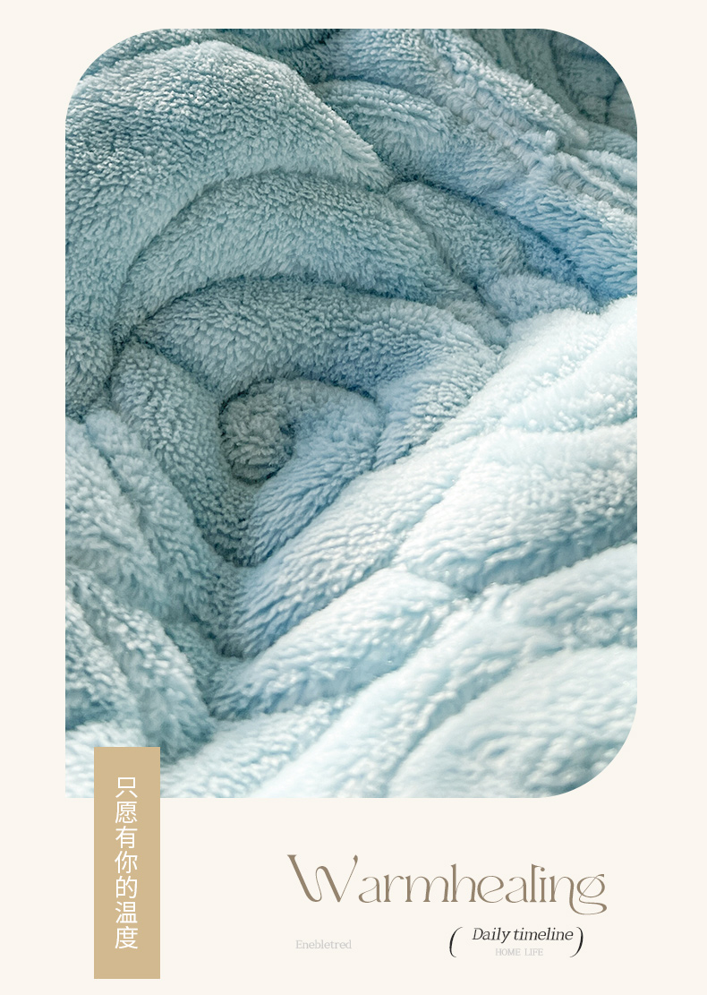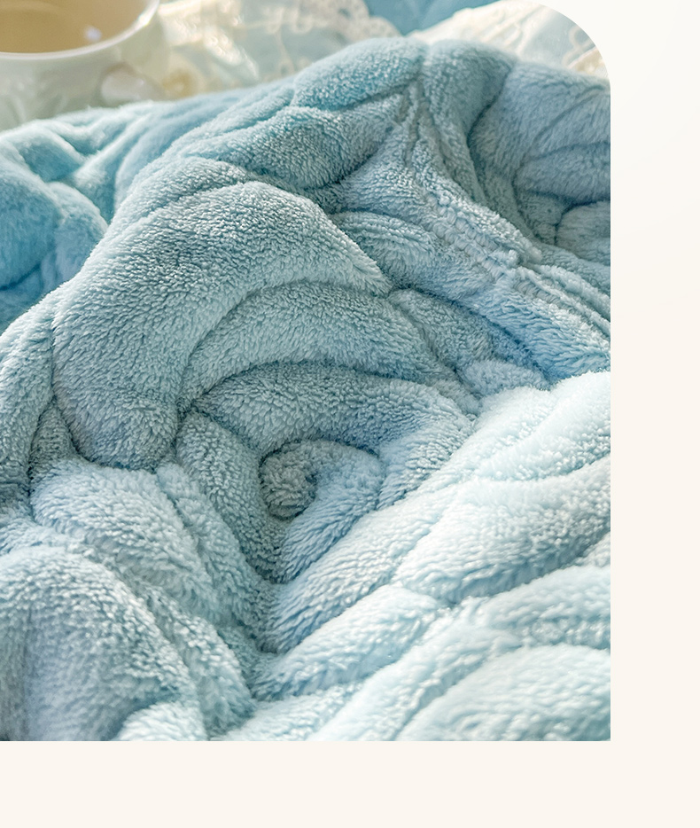 恋尚 2024新款高克重牛奶绒夹棉蕾丝花边单床盖--朵拉 朵拉-天空蓝