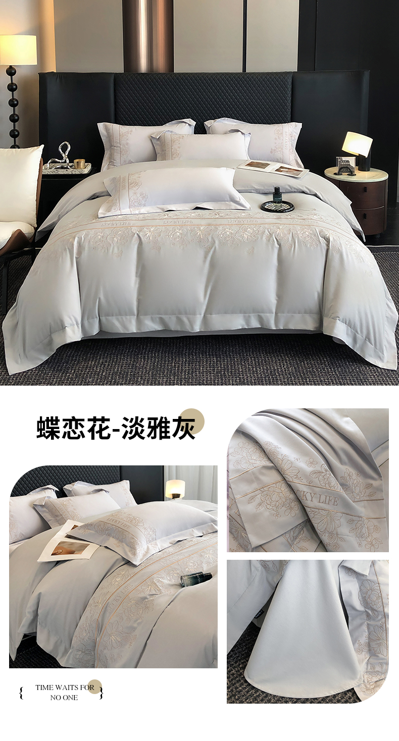 商品名称:家居1号家纺 2024新款加厚磨毛四件套-蝶恋花系列 蝶恋花-淡雅灰