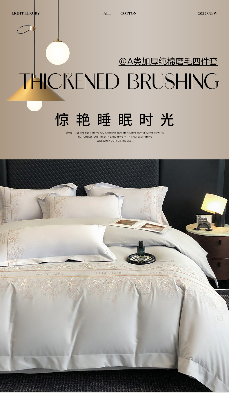 (总)家居1号家纺 2025新款全消光牛奶绒刺绣圣玛丽四件套,圣玛丽-粉豆沙,圣玛丽-果绿,圣玛丽-晴蓝,圣玛丽-绅士灰,圣玛丽-香槟金