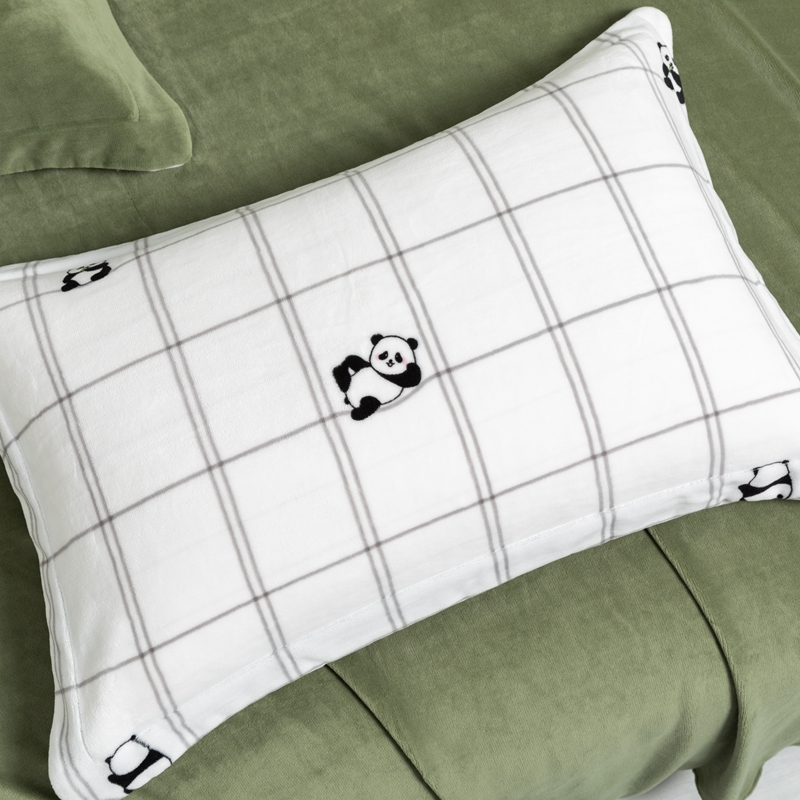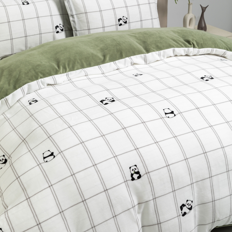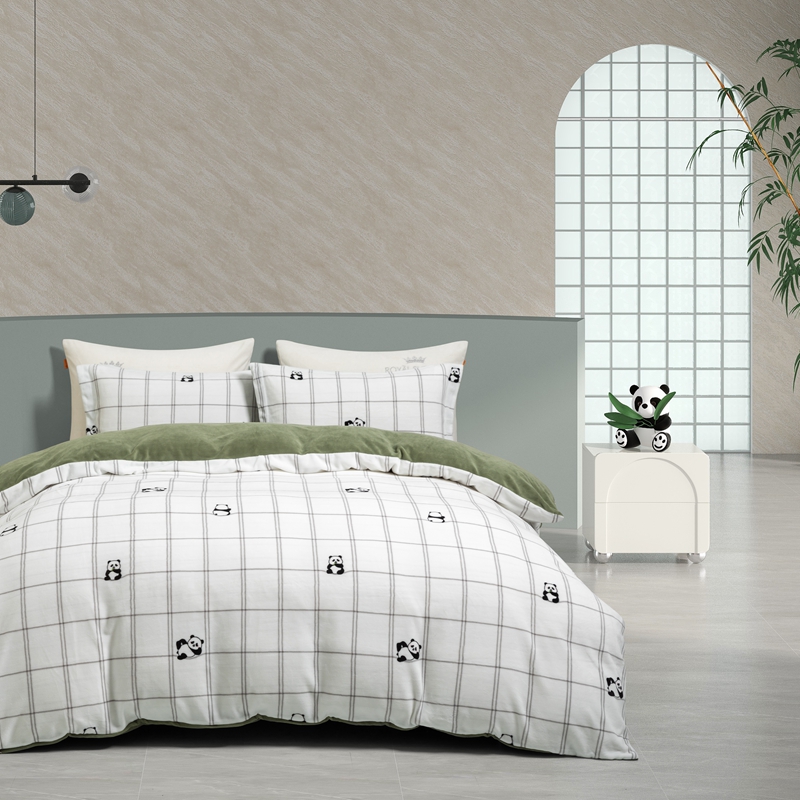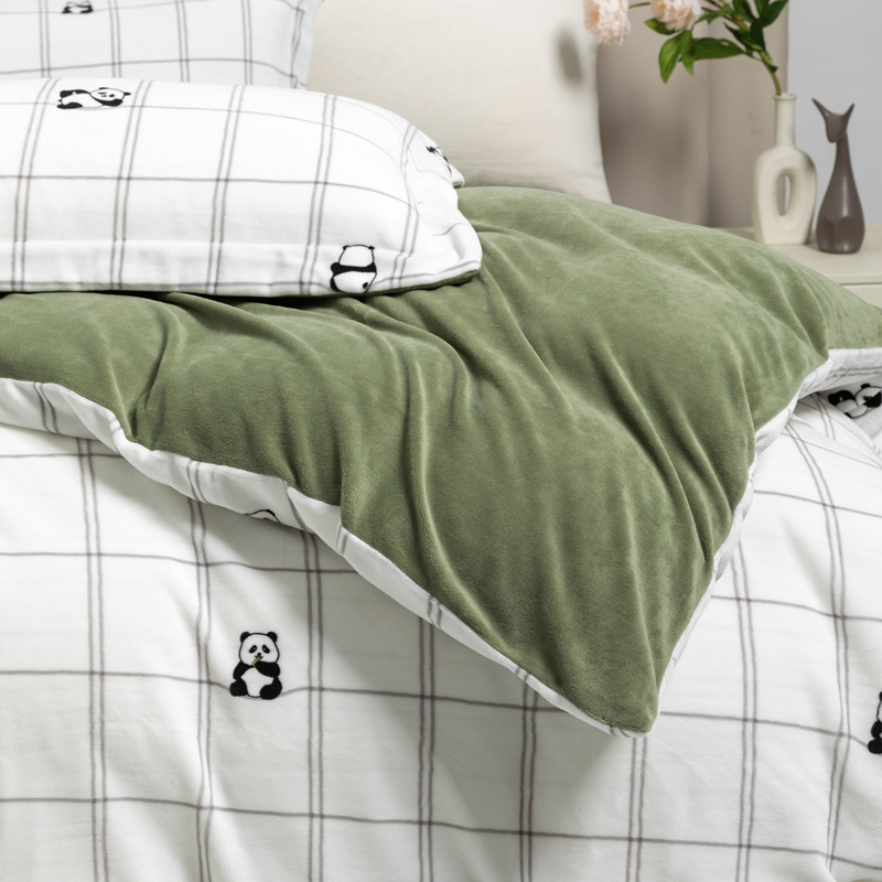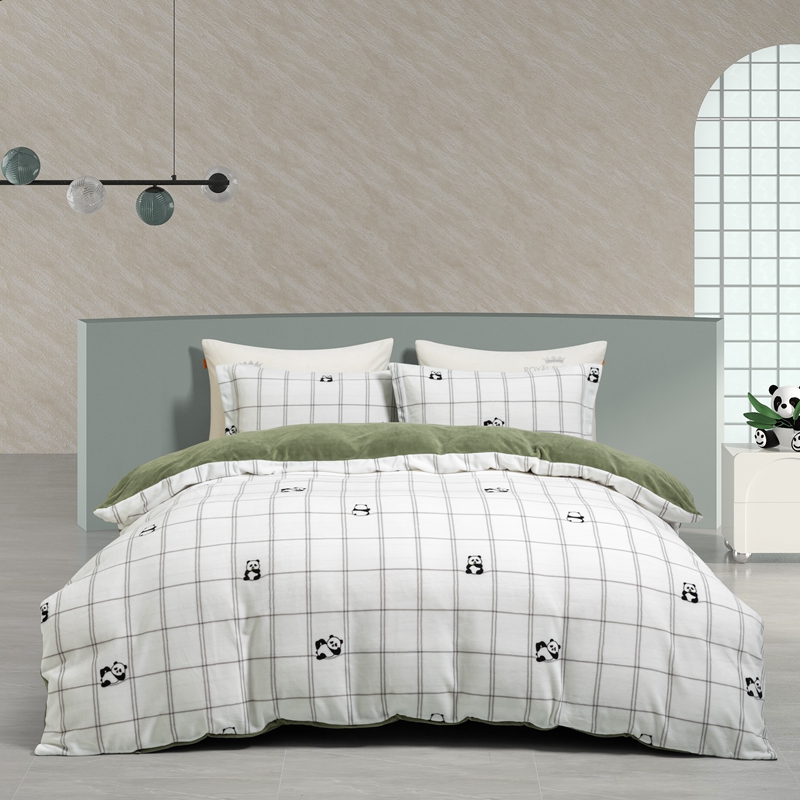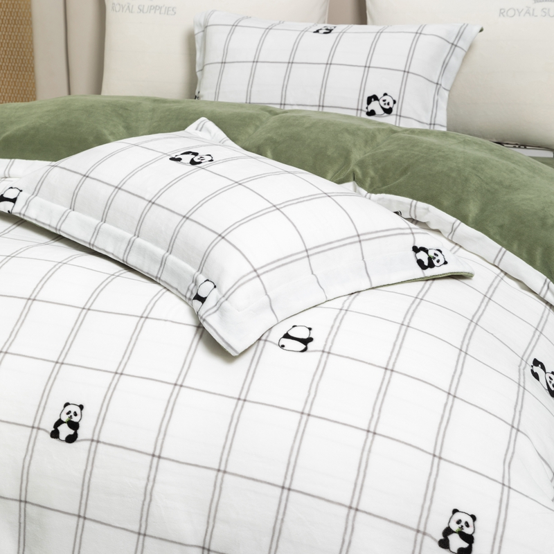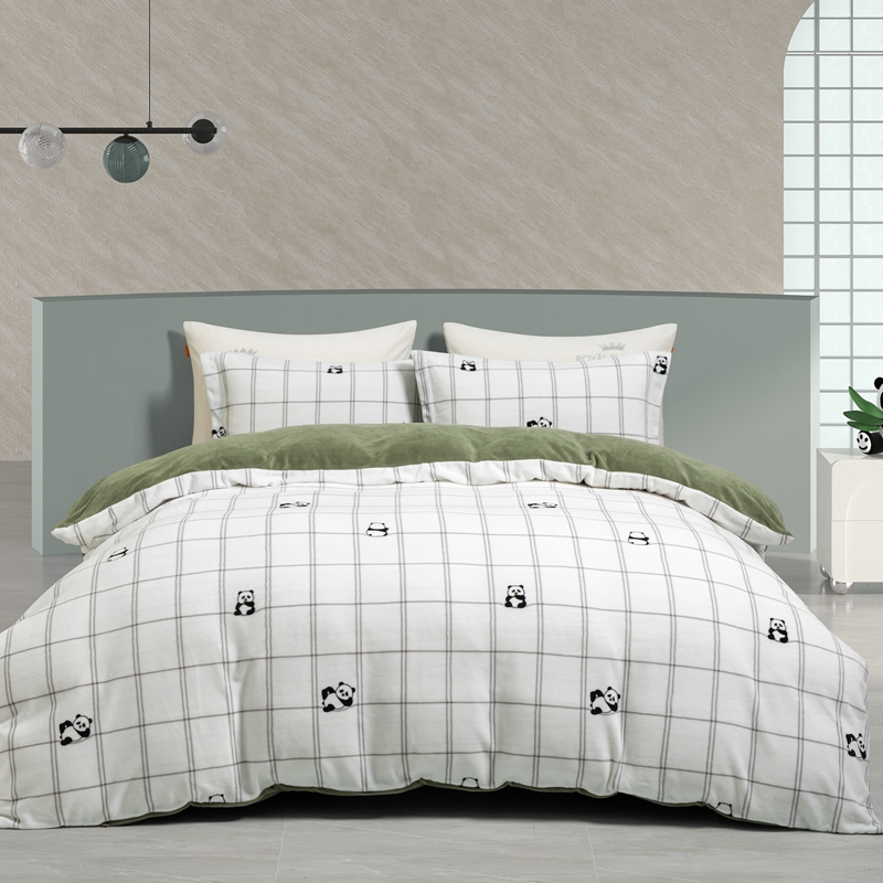 商品名称:宜家坊 2024新款加厚保暖印花牛奶绒四件套 胖达绒绒-青豆绿