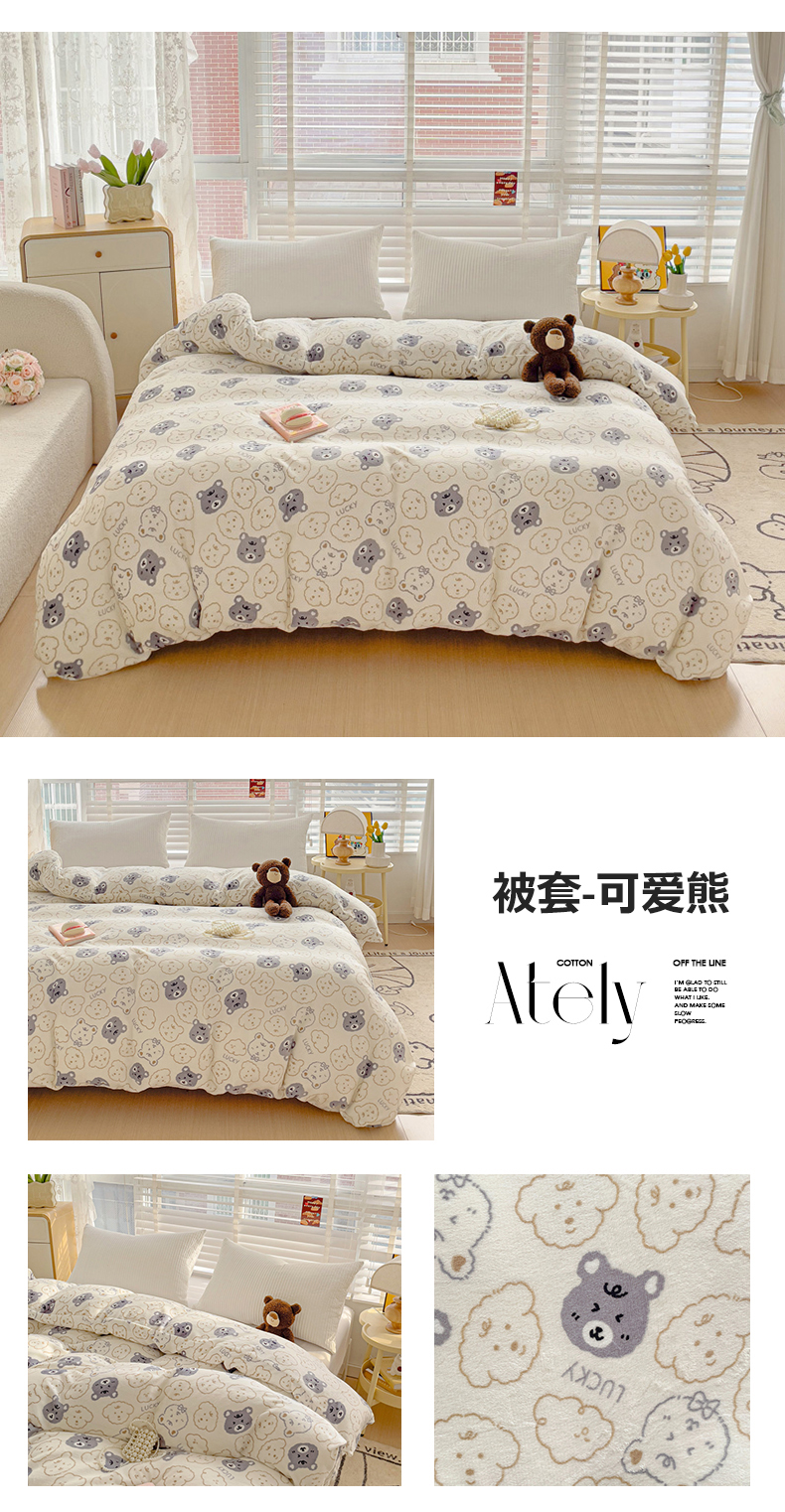 雅萱家纺 2024新款牛奶绒单被套 被套-可爱熊