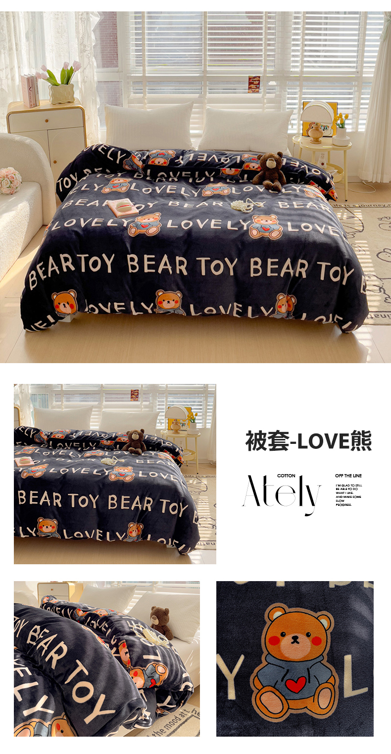 雅萱家纺 2024新款牛奶绒单被套 被套-LOVE熊