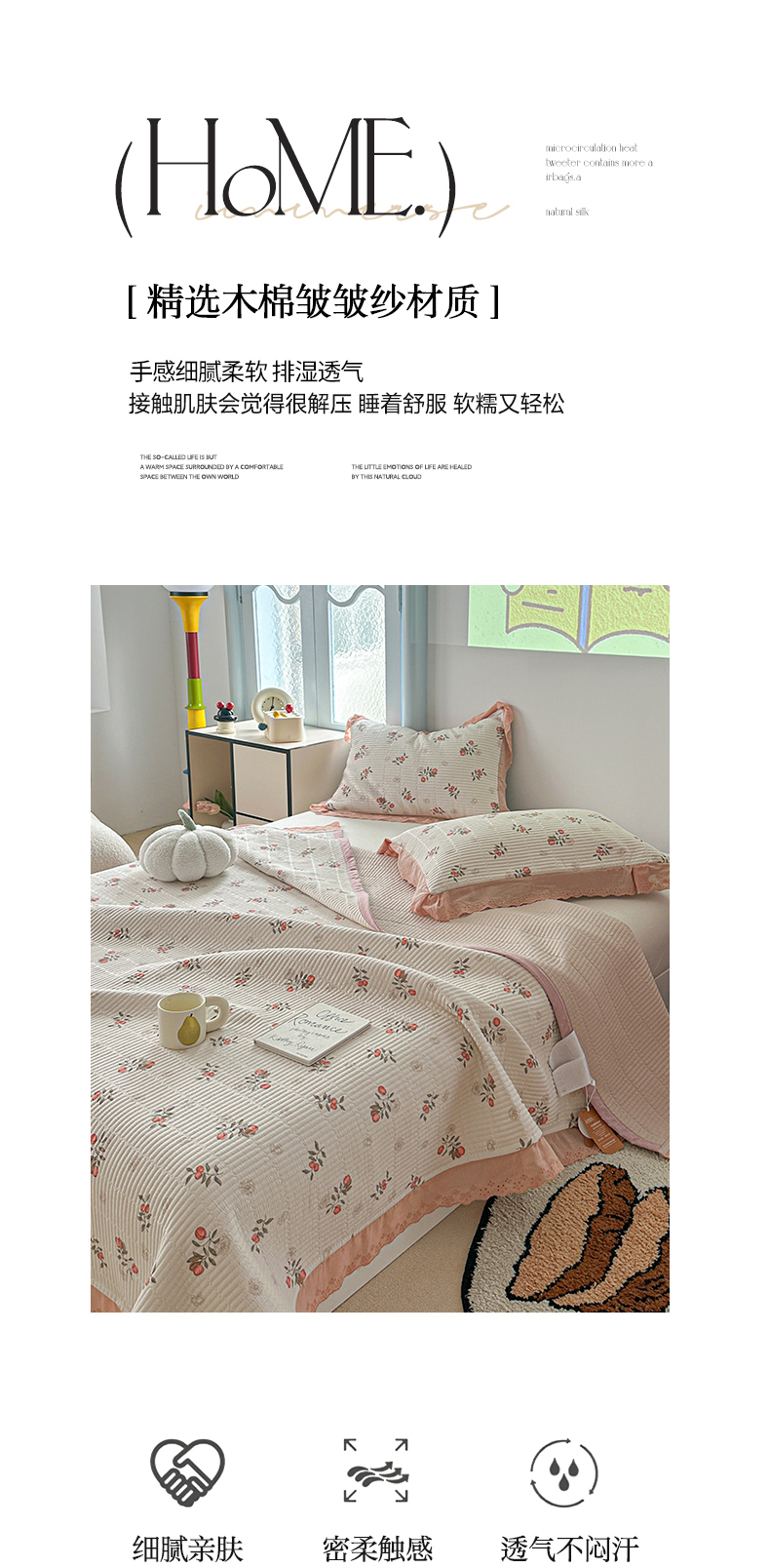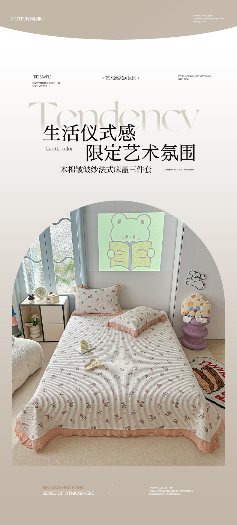 商品名称:源舜 2025新款云感皱皱纱法式床盖三件套 春风里