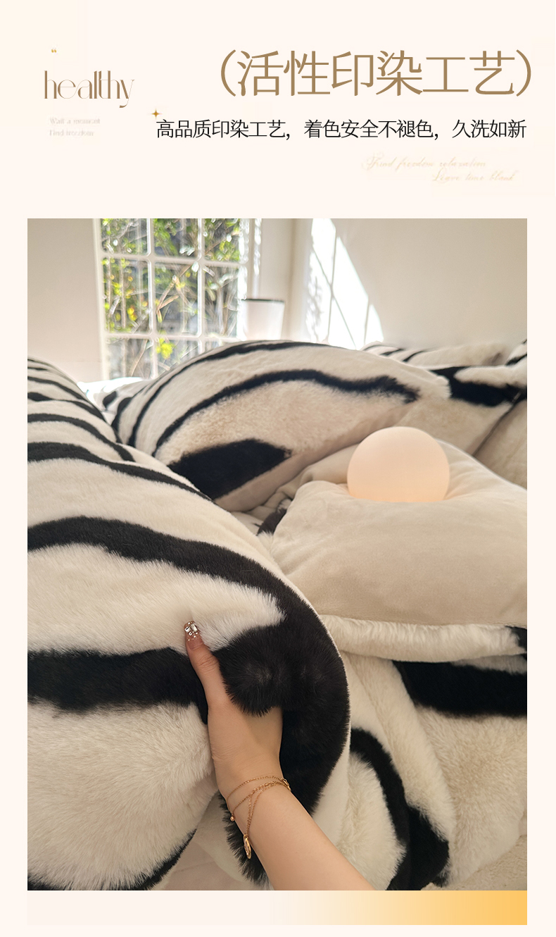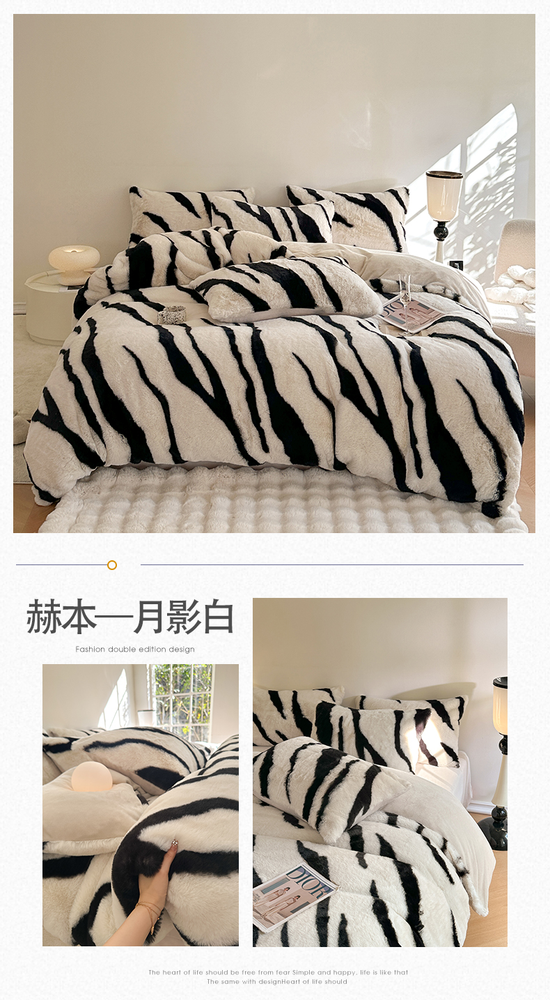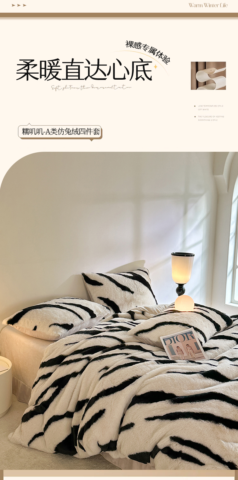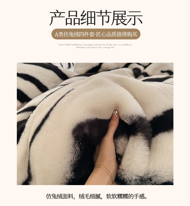 商品名称:罗优 2025新款A类仿兔绒四件套-赫本 赫本-月影白