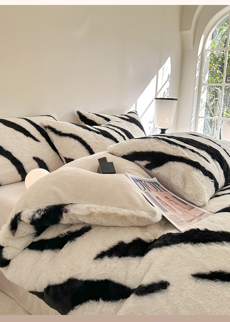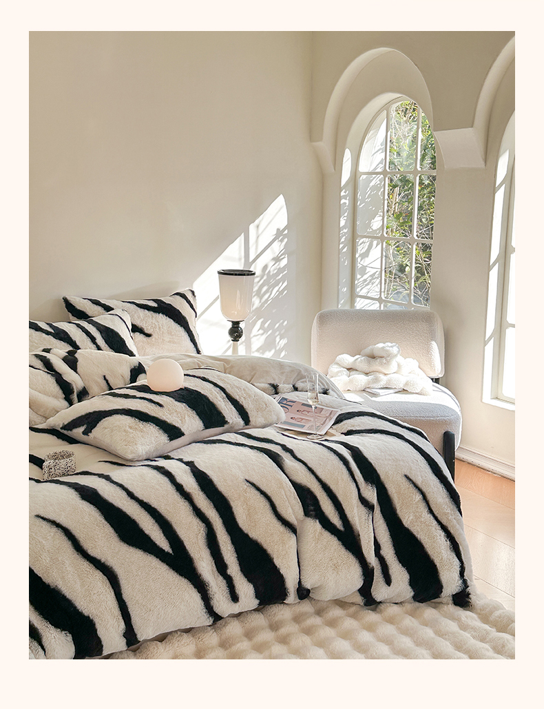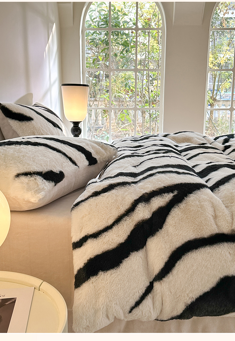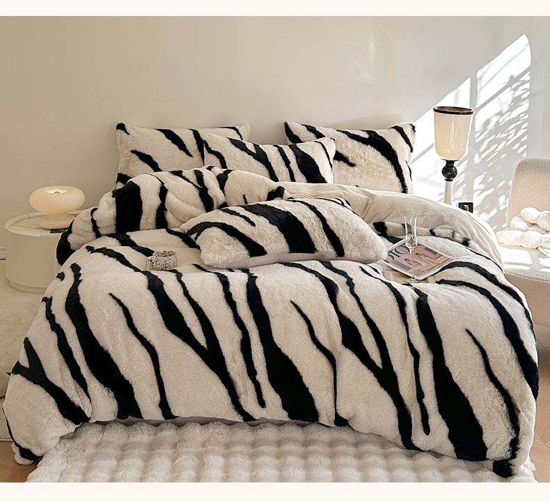 商品名称:罗优 2025新款A类仿兔绒四件套-赫本 赫本-月影白