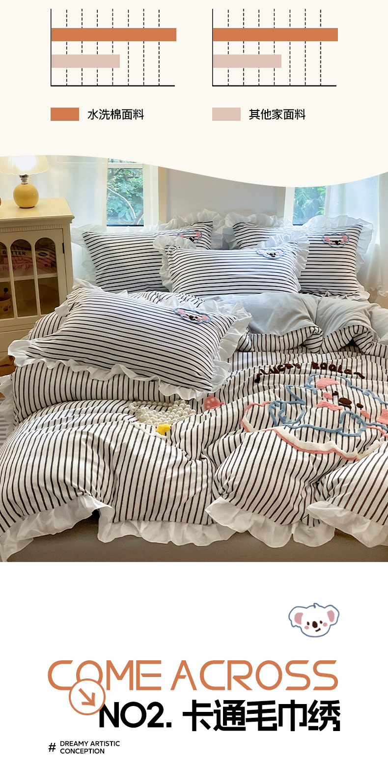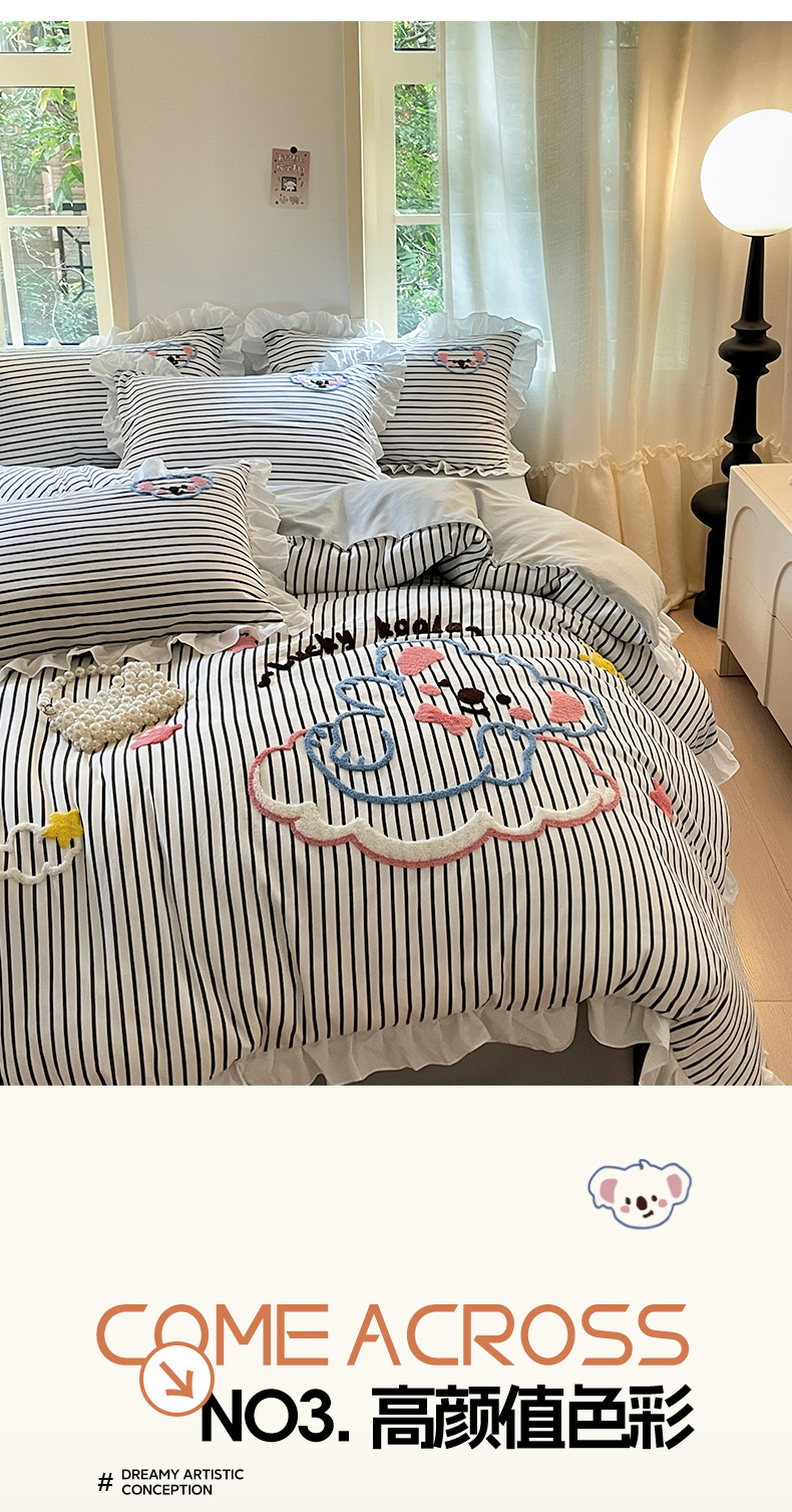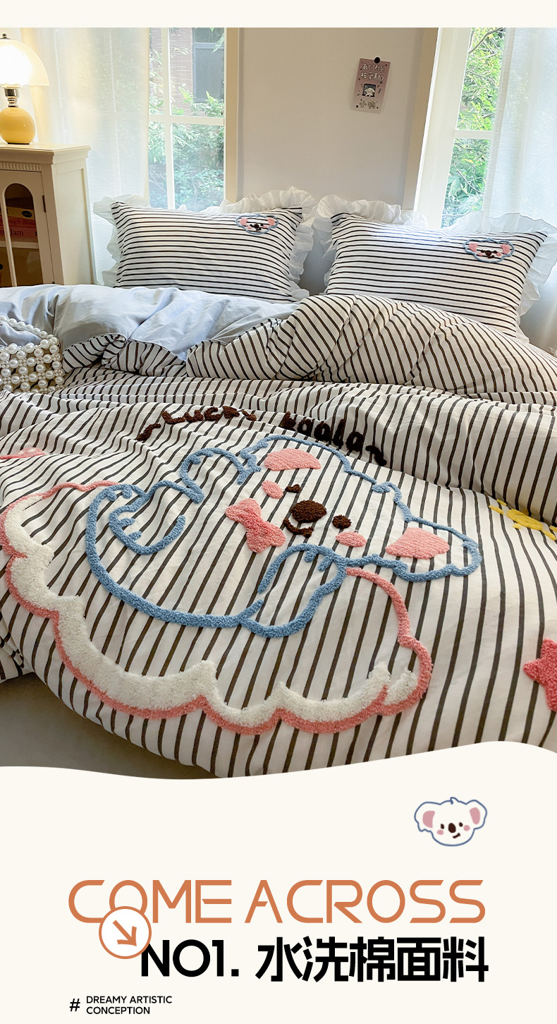 当前位置: 91家纺网 > 商品网购 > 床品套件 > 四件套 > 毛巾绣四件套 > 泉欣家纺 2025新品韩系网红水洗棉卡通毛巾绣花小象考拉系列四件套(专版花型) 云朵考拉高级灰