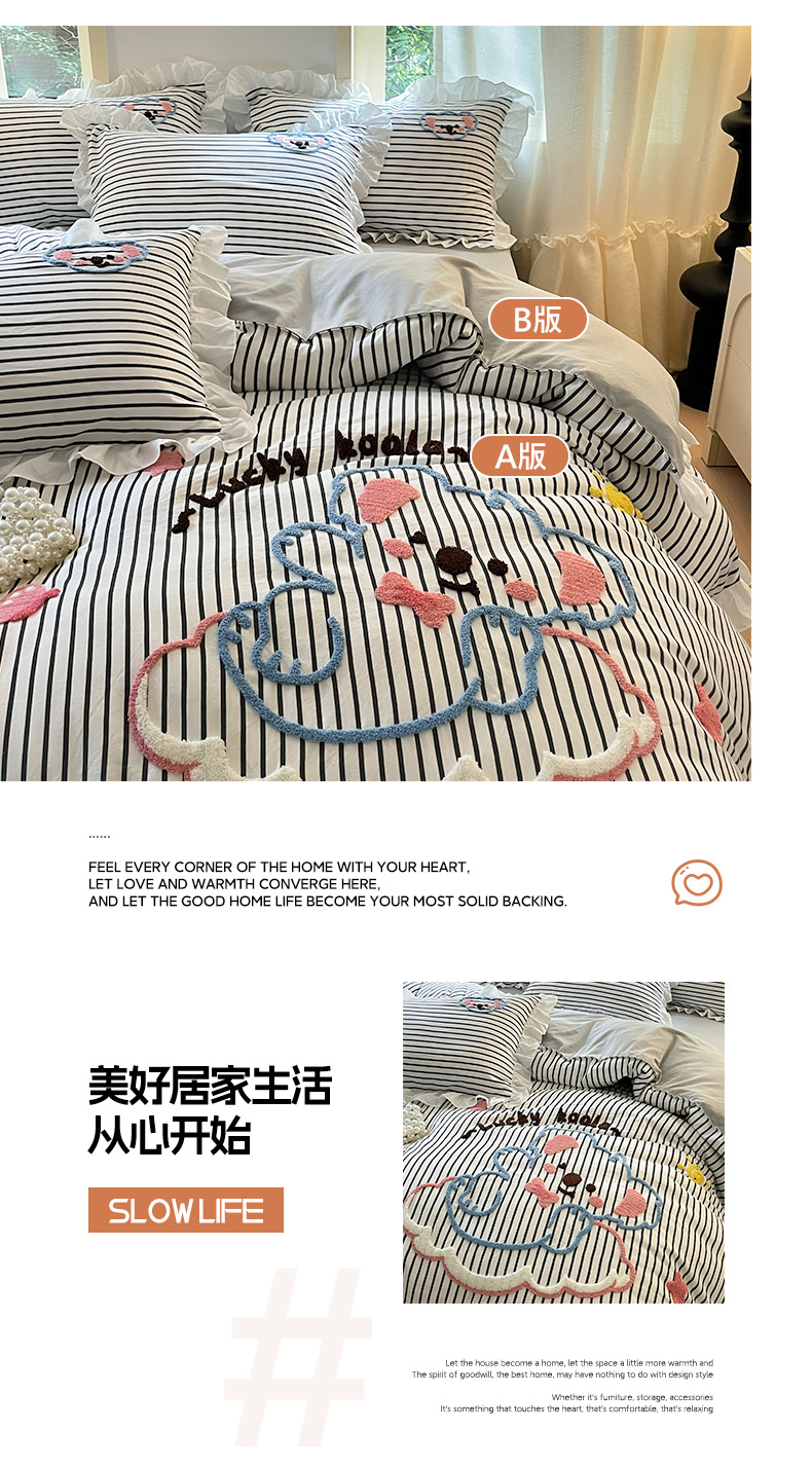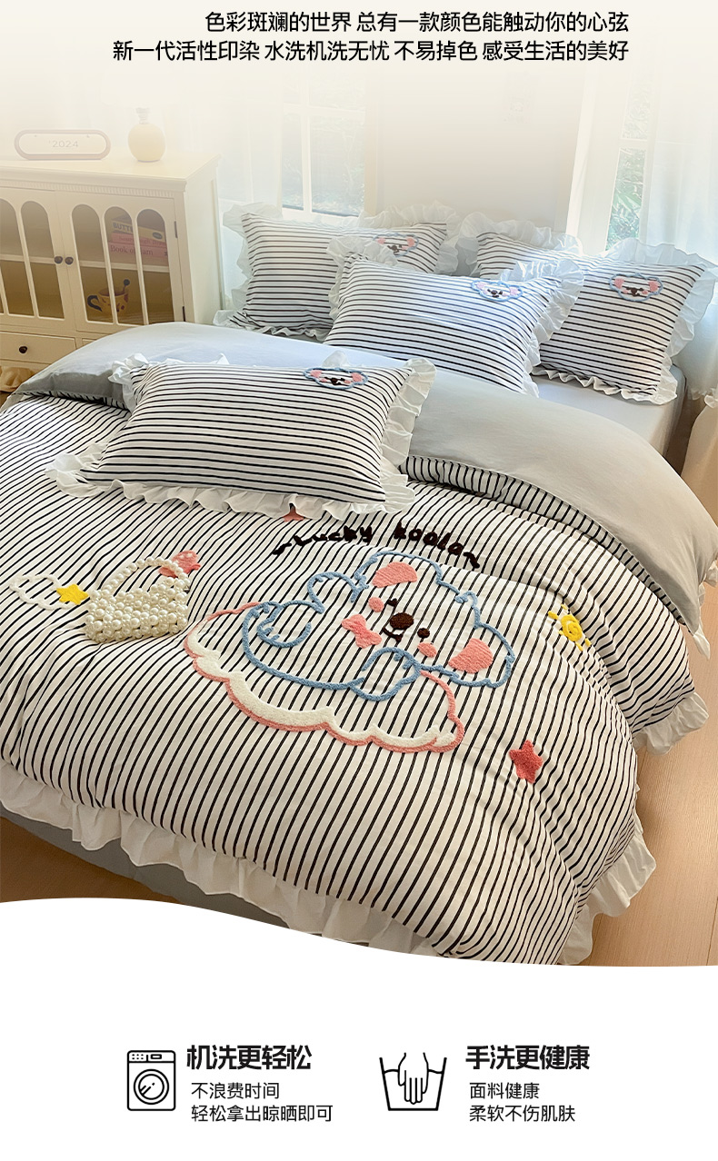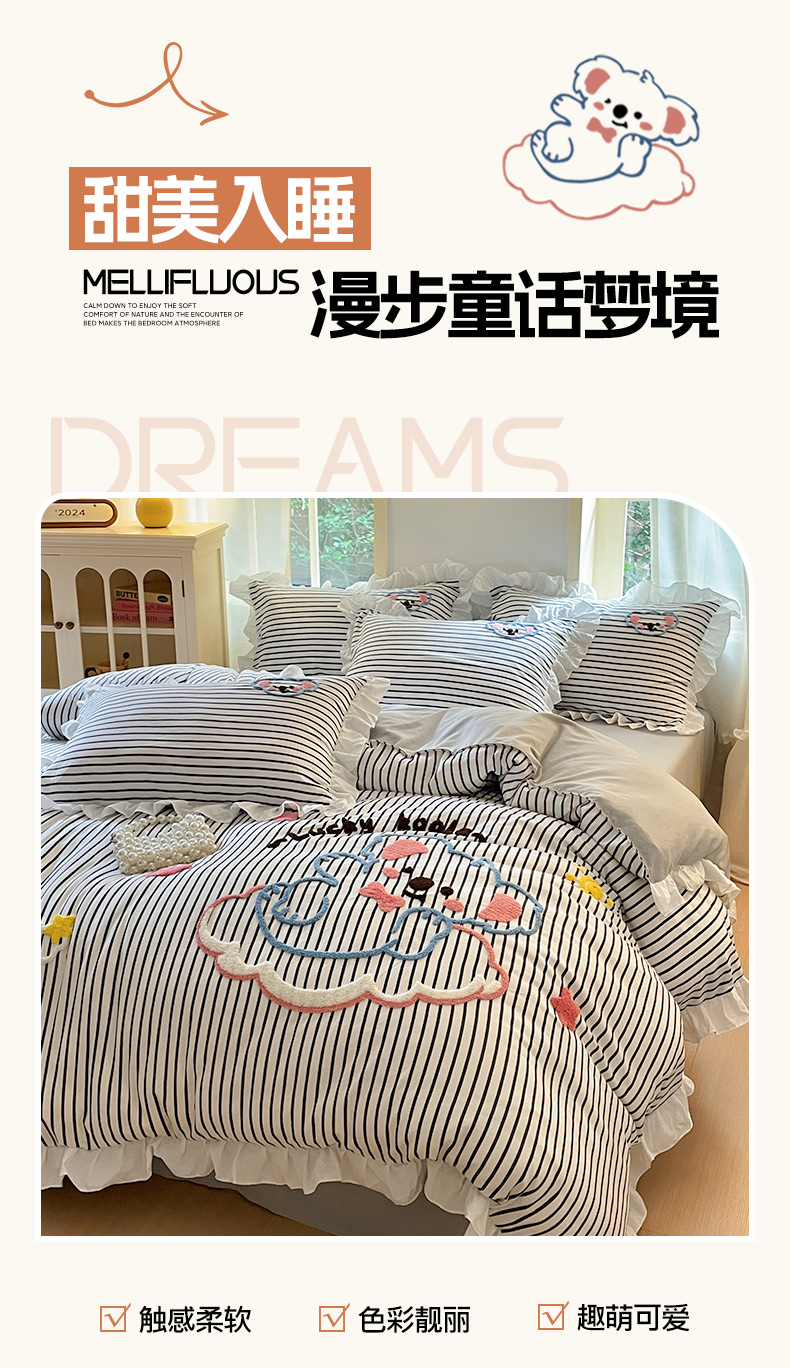 当前位置: 91家纺网 > 商品网购 > 床品套件 > 四件套 > 毛巾绣四件套 > 泉欣家纺 2025新品韩系网红水洗棉卡通毛巾绣花小象考拉系列四件套(专版花型) 云朵考拉高级灰