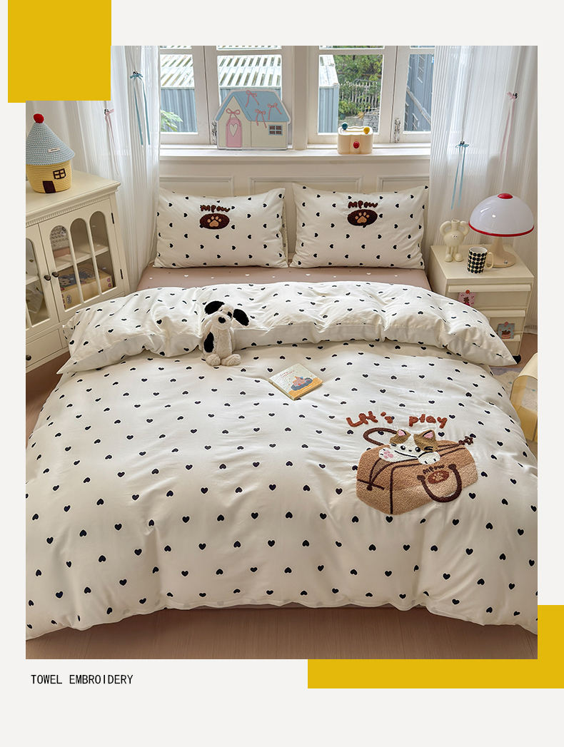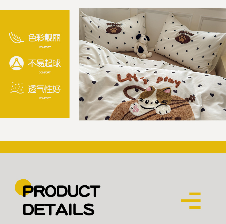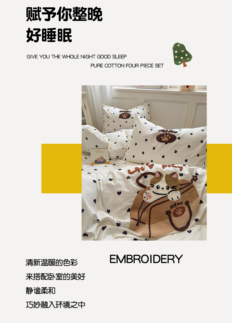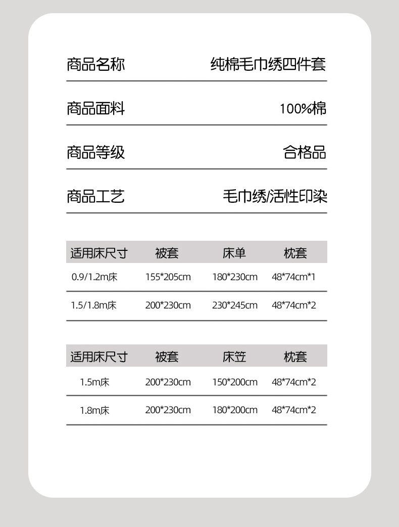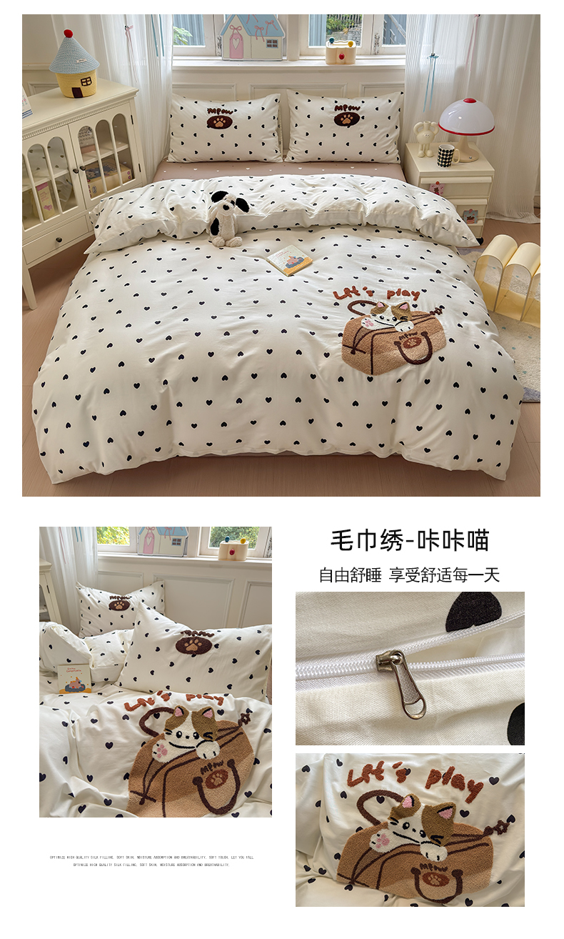 商品名称:曼之夏 2025新款全棉亲肤舒适毛巾绣四件套 毛巾绣-咔咔喵