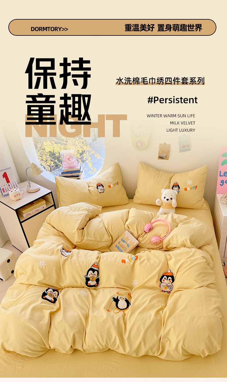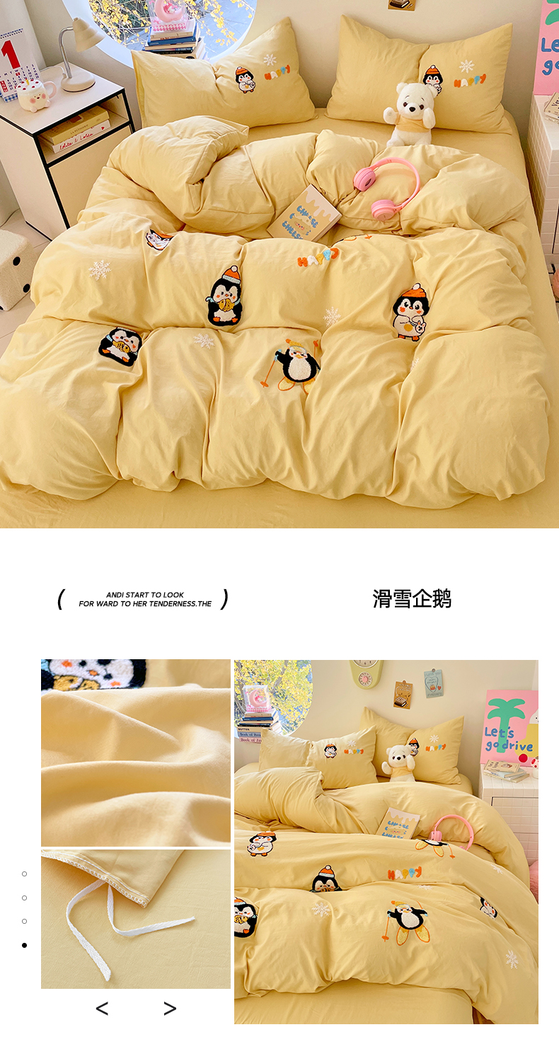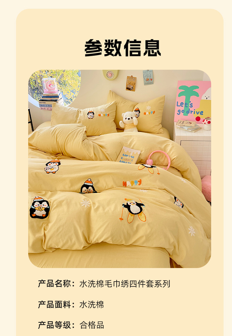 当前位置: 91家纺网 > 商品网购 > 床品套件 > 四件套 > 毛巾绣四件套 > 卡迪熊家纺 2025新款水洗m毛巾绣四件套 天滑雪企鹅