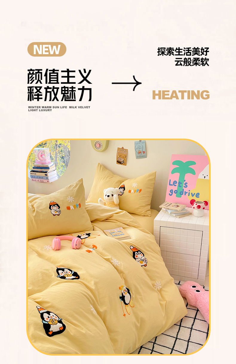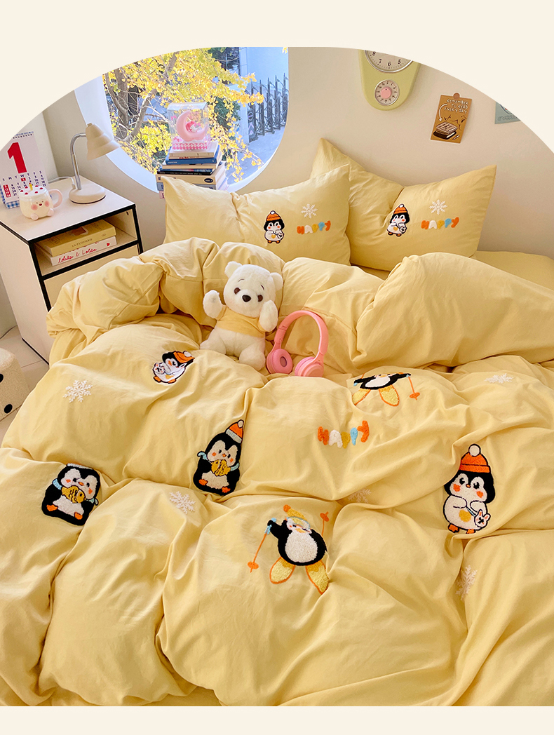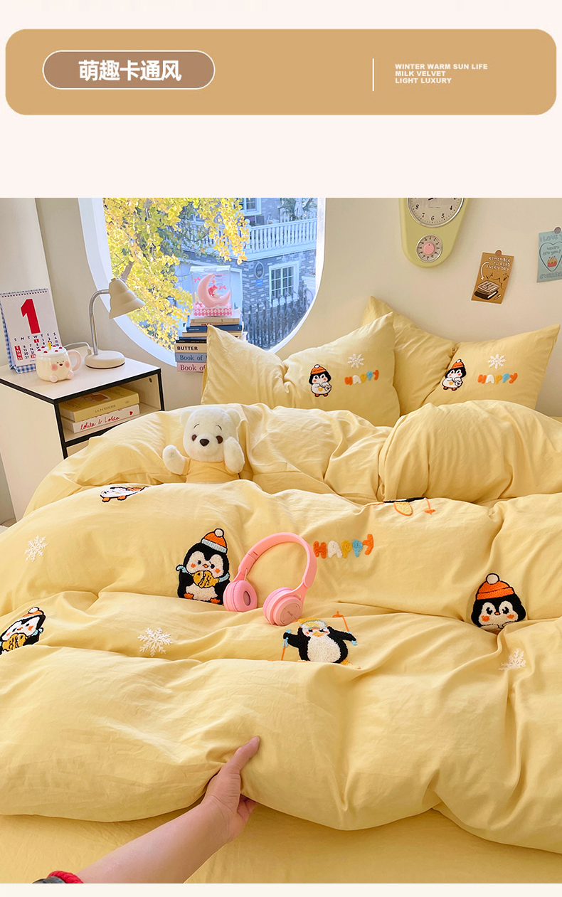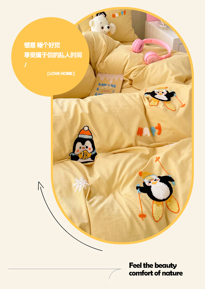 当前位置: 91家纺网 > 商品网购 > 床品套件 > 四件套 > 毛巾绣四件套 > 卡迪熊家纺 2025新款水洗m毛巾绣四件套 天滑雪企鹅