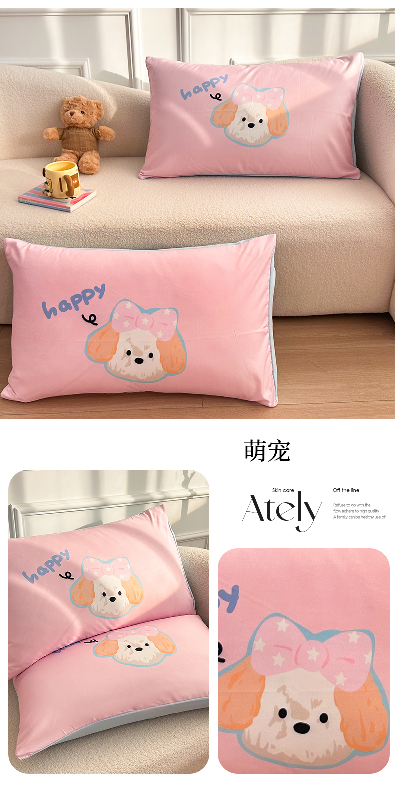 商品名称:多品家纺 2025新款大版系列超柔水洗棉枕套 大版萌宠