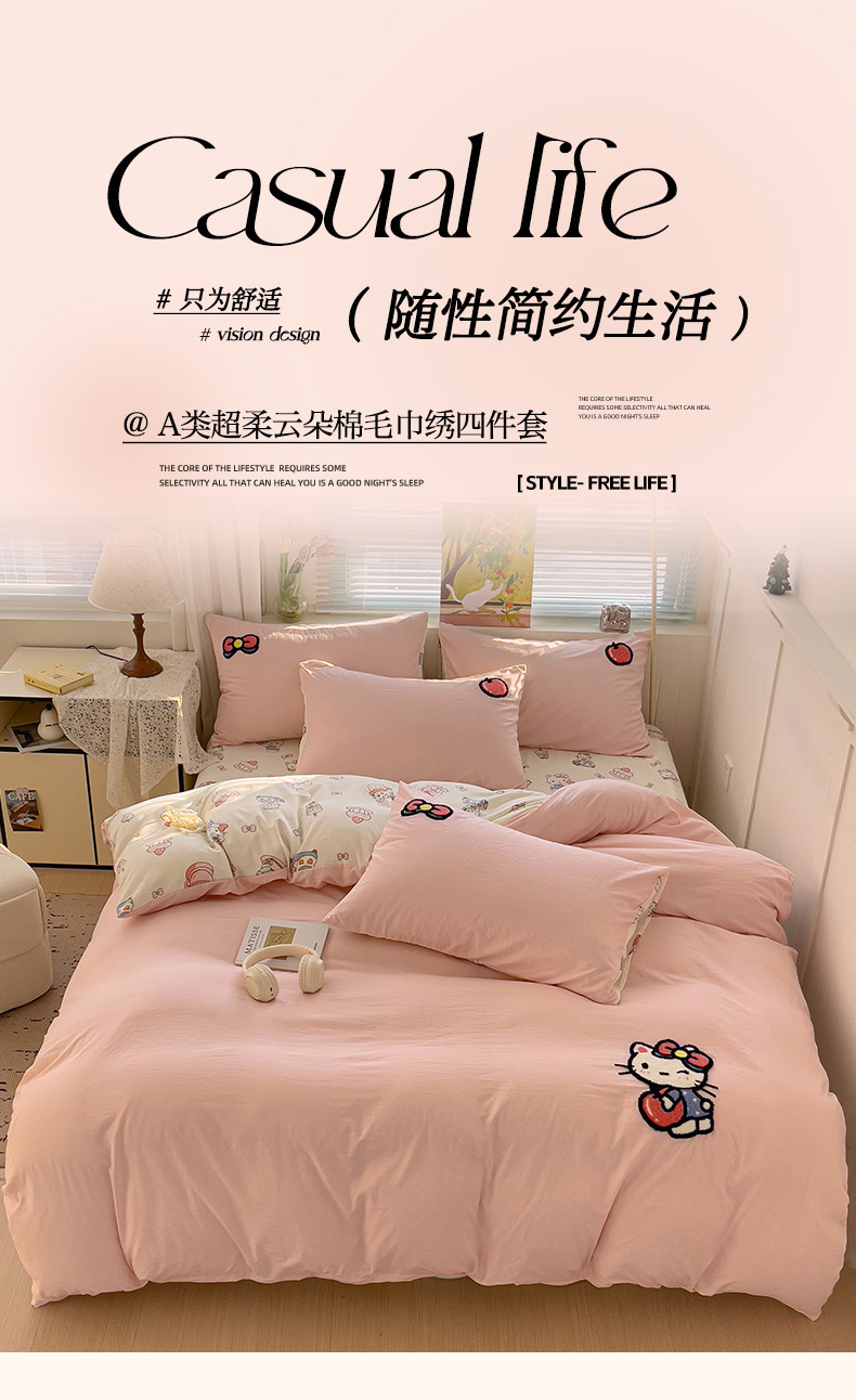 当前位置: 91家纺网 > 商品网购 > 床品套件 > 四件套 > 水洗棉四件套 > 妖妖家纺 2025新款水洗云朵毛巾绣印+绣系列四件套 wink苹果猫-粉