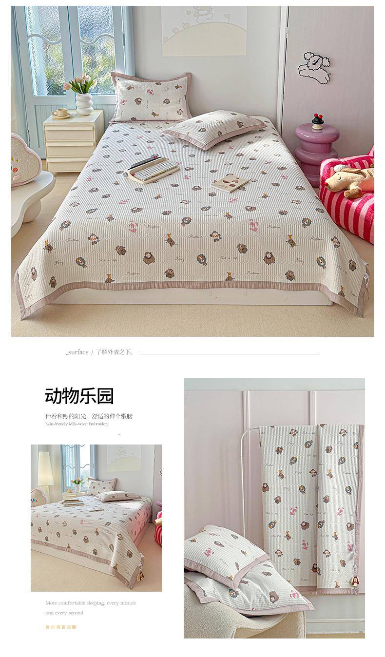 商品名称:源舜家纺 2025新款无弹针织棉床盖三件套 动物乐园
