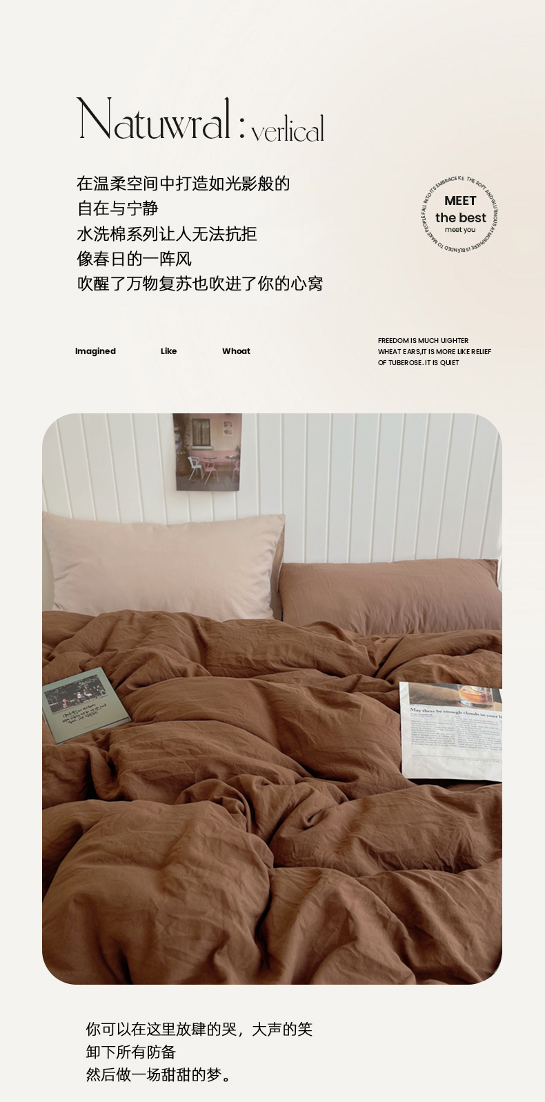 当前位置: 91家纺网 > 商品网购 > 床品套件 > 四件套 > 其它四件套 > 2025新款ins博主风纯色混搭双色水洗m四件套(软糯舒适,非市场普通面料!!!) 多色水洗m-深咖米