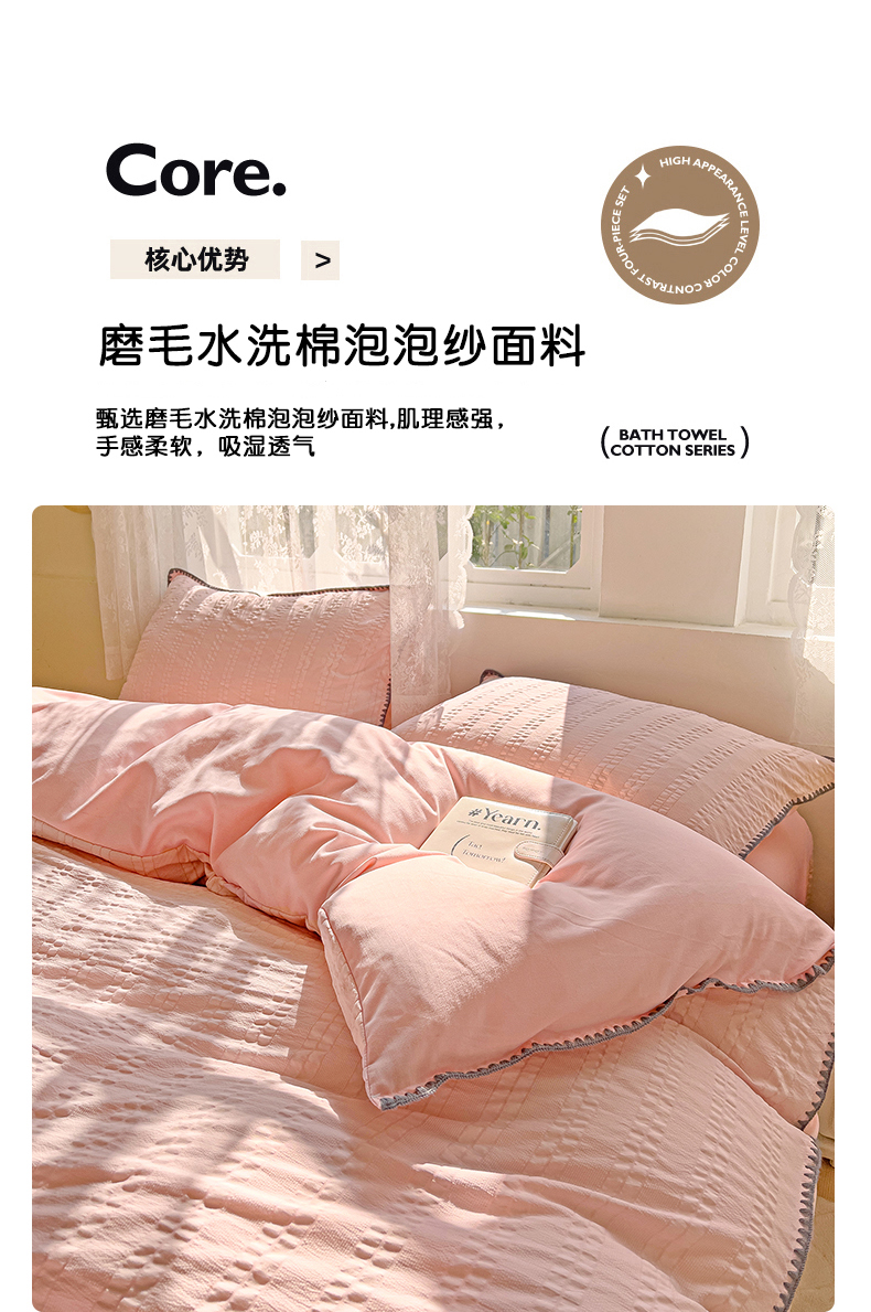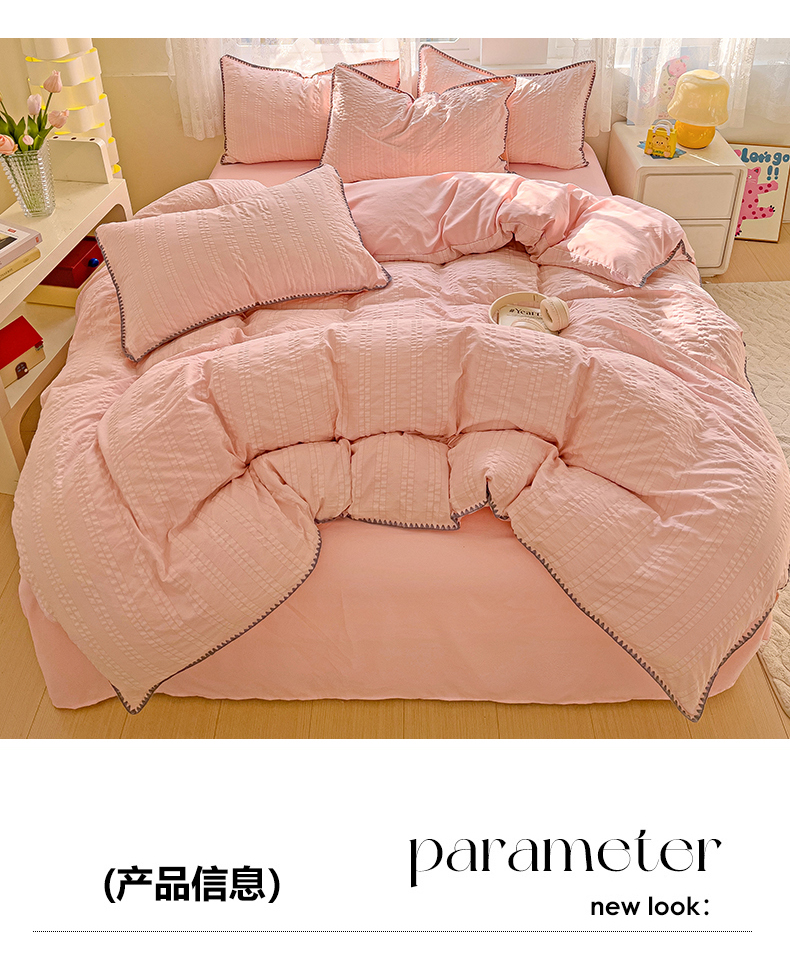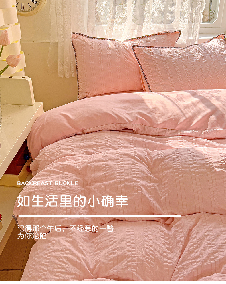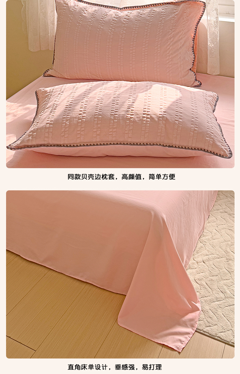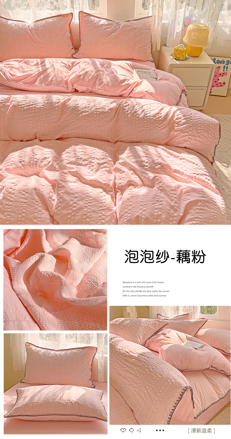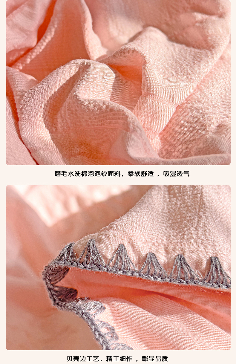商品名称:娜娜 2025新款磨毛水洗棉泡泡纱贝壳边四件套 泡泡纱-藕粉