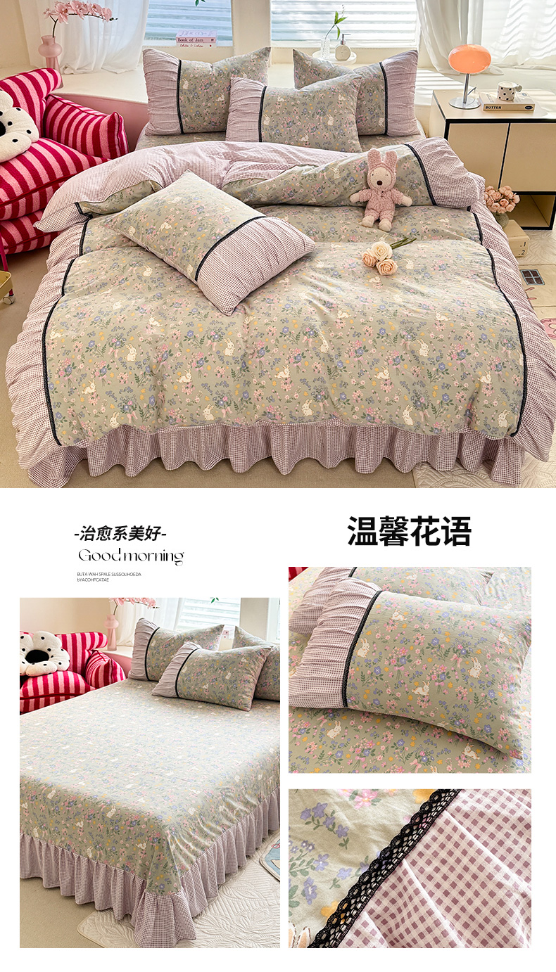 商品名称:芭比蔓家纺 2025新款磨毛法式浪漫复古四件套 温馨花语