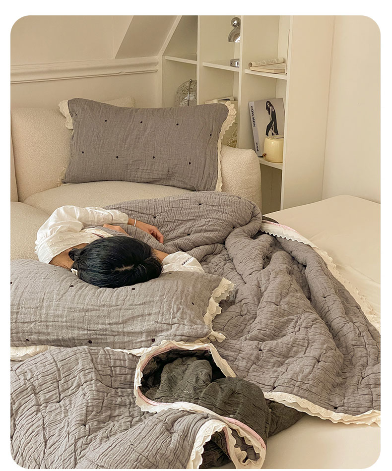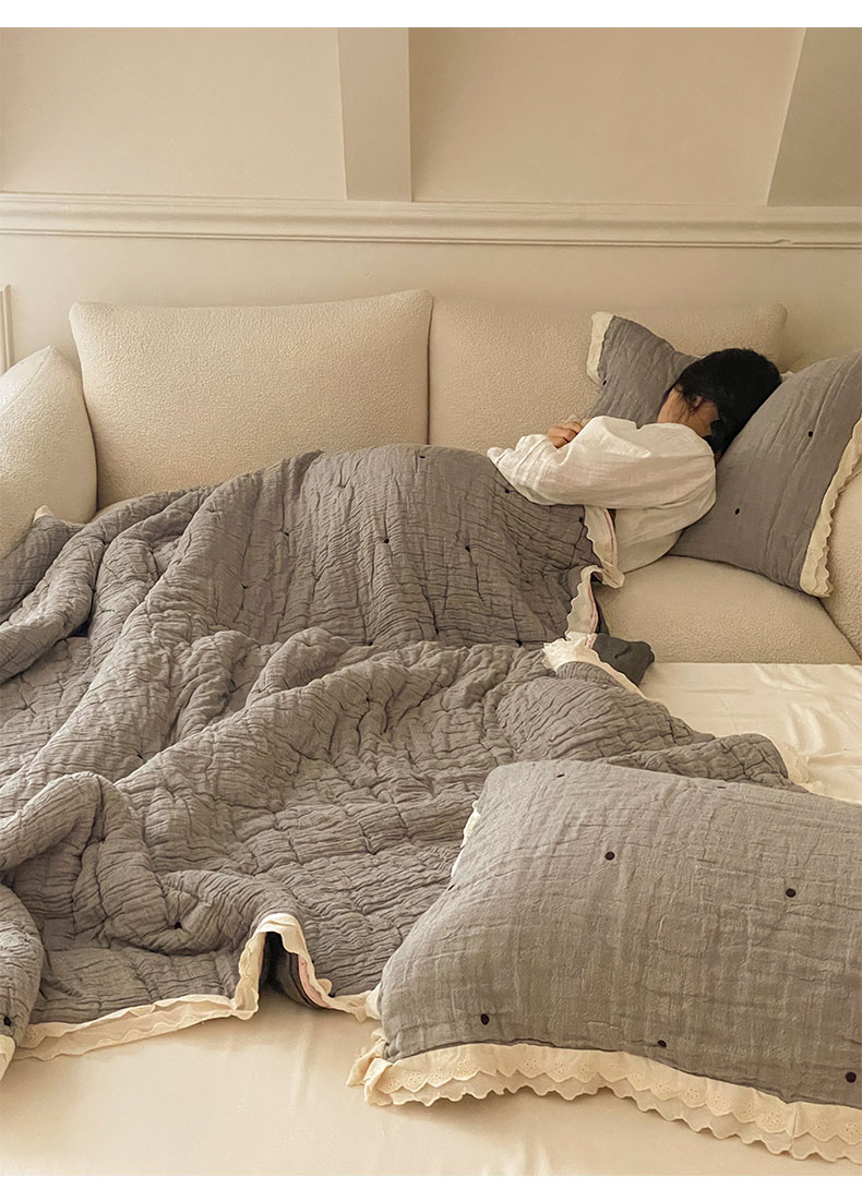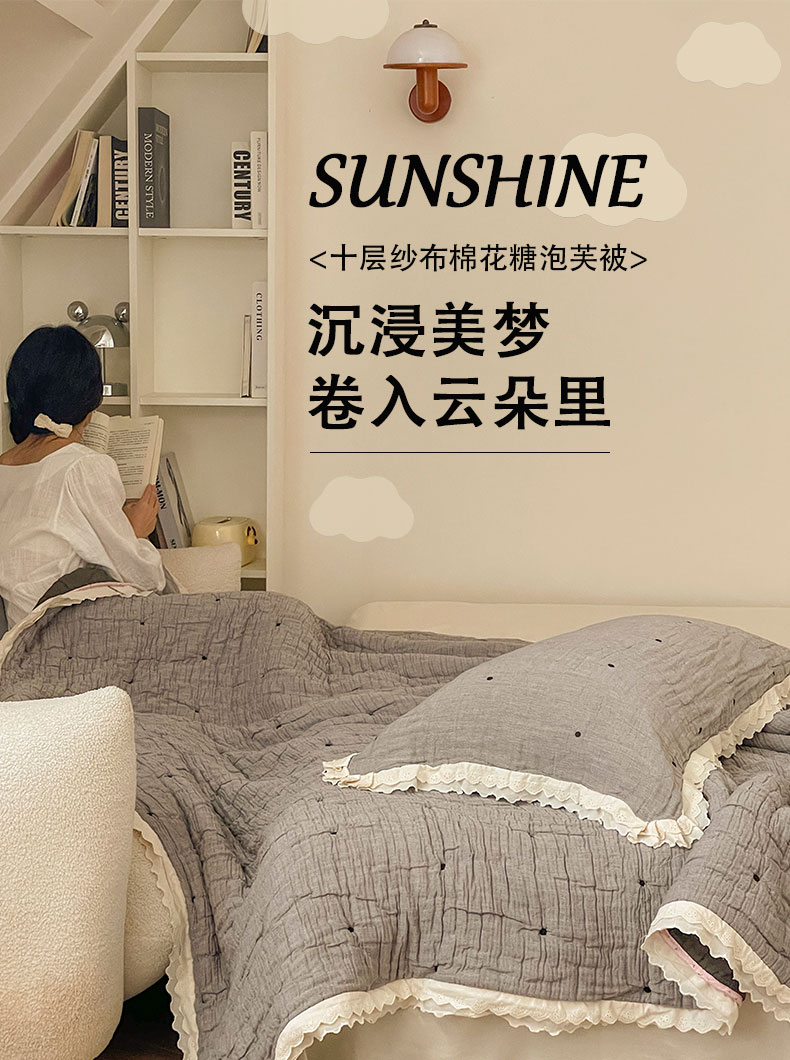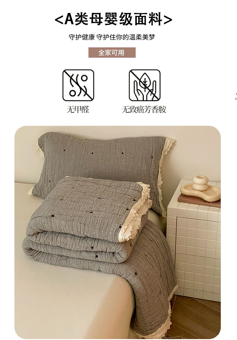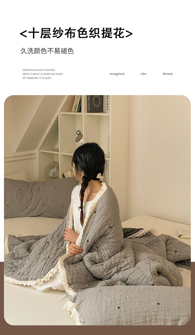 商品名称:麻依 2025新款十层纱布棉花糖春秋被被子泡芙被 点点-灰