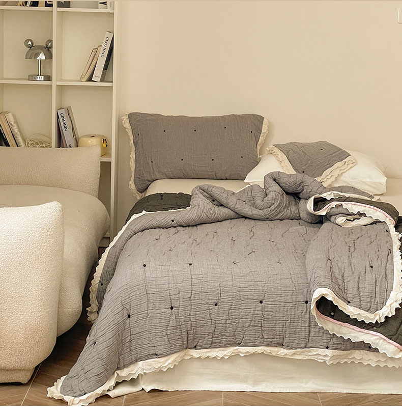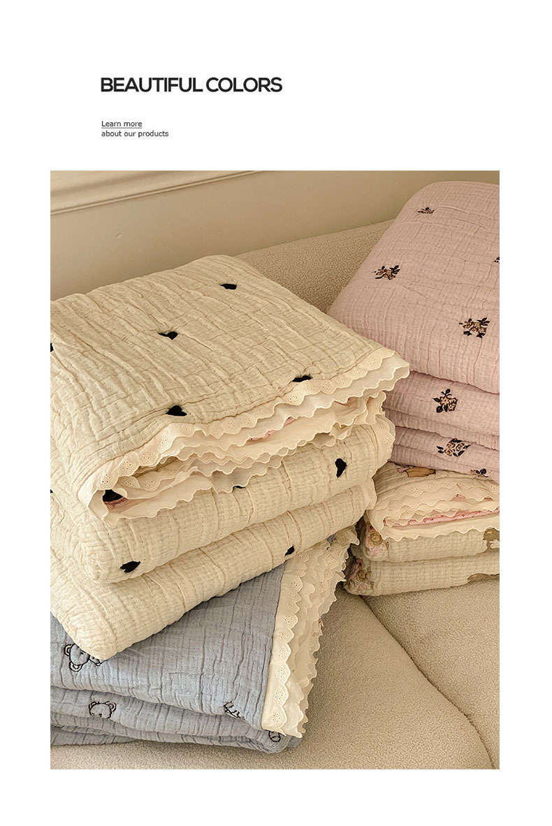 (总)麻依 2025新款韩国清新全棉纱布床盖三件套,憨憨熊,彩色南瓜,车厘子,两颗草莓,奶盖KT,奶油波点-灰,奶油彩点,水蓝KT,水墨花,丝带,桃心-米白,小猫鱼