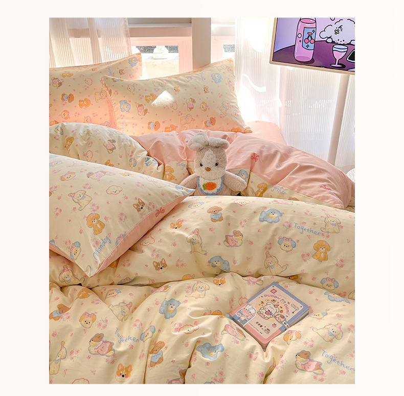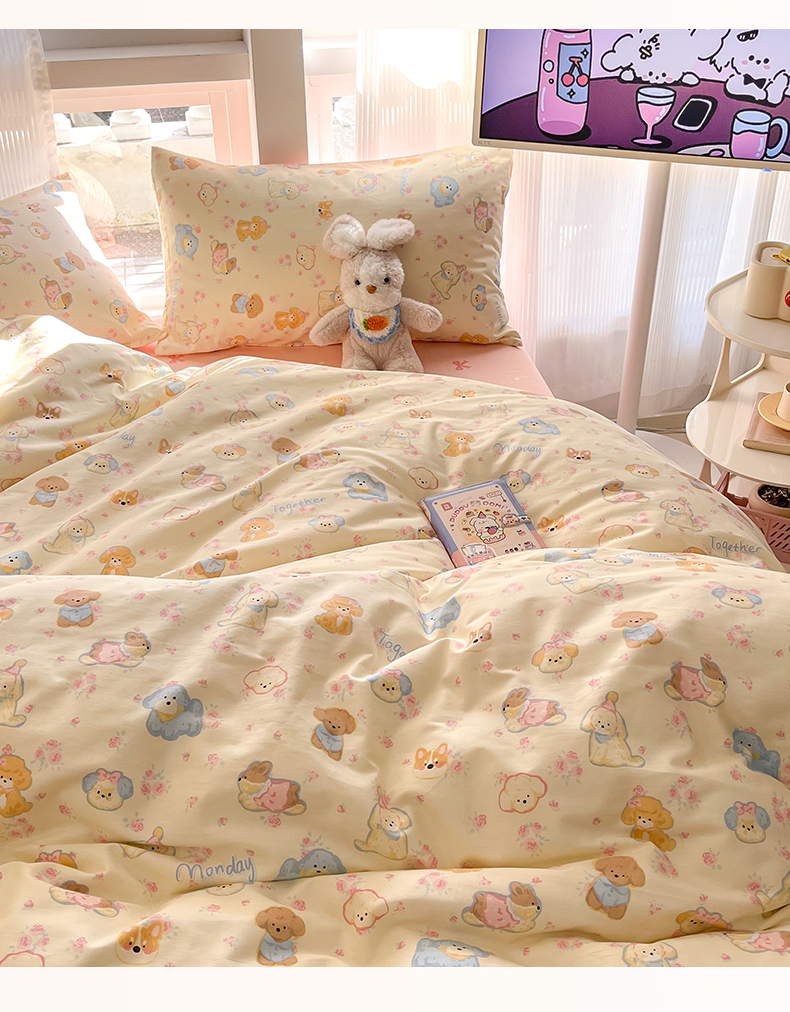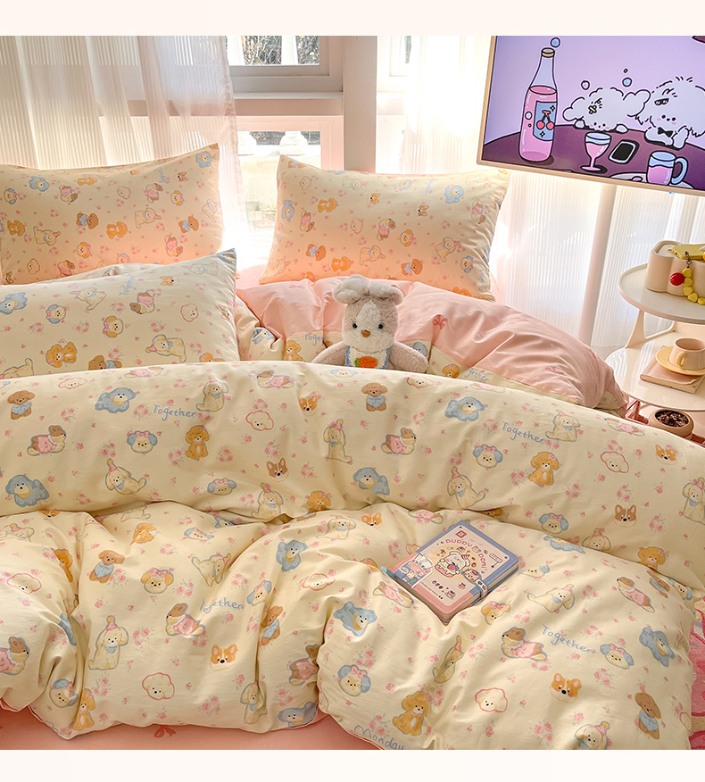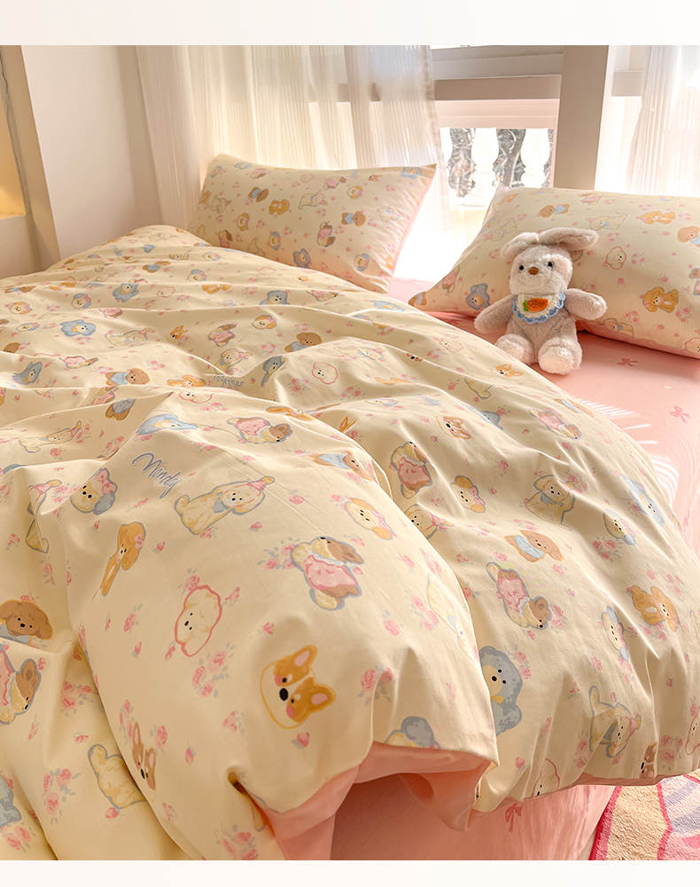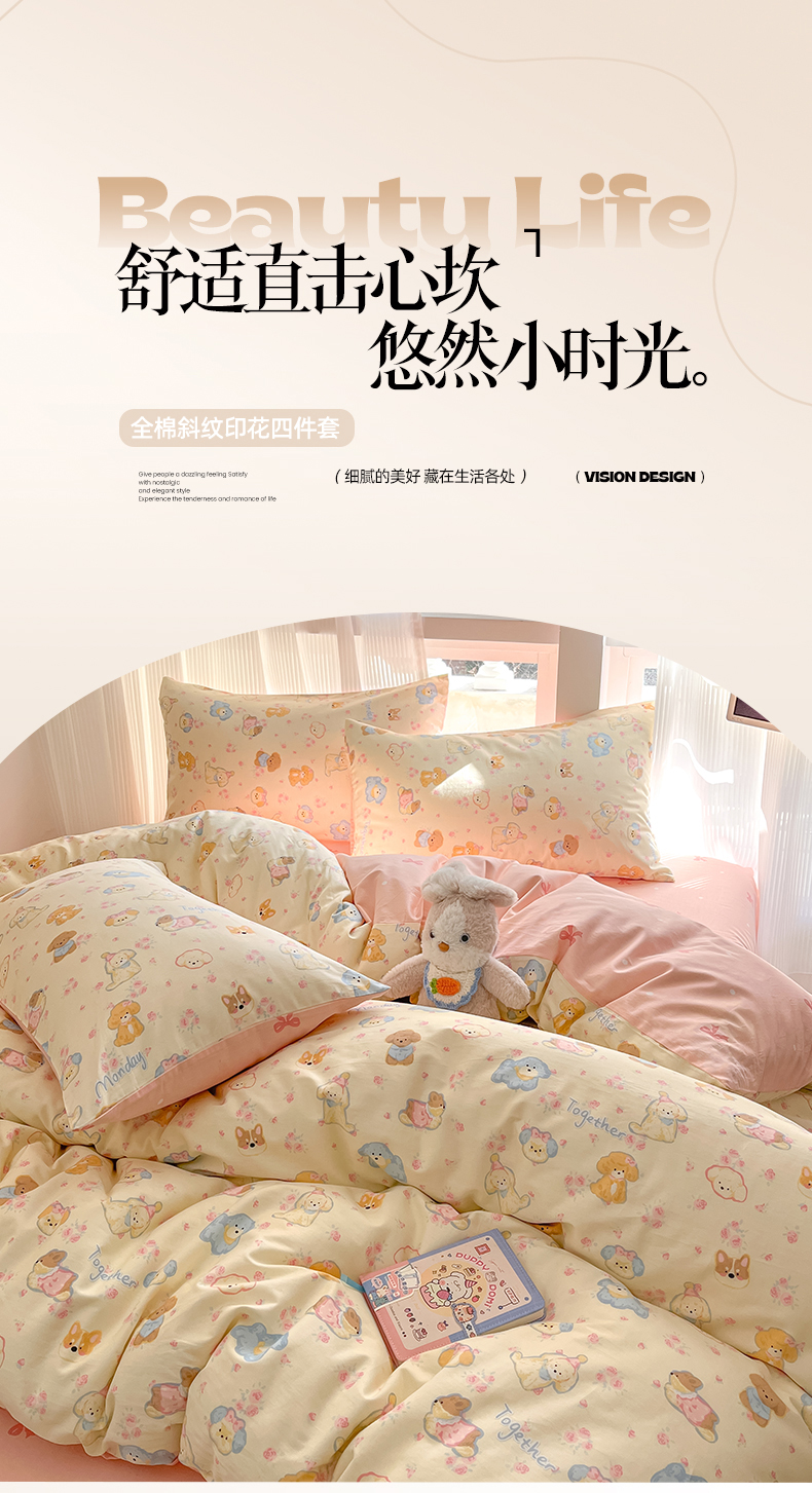 吉象家纺 2025新款全棉斜纹印花四件套 狗狗家族米