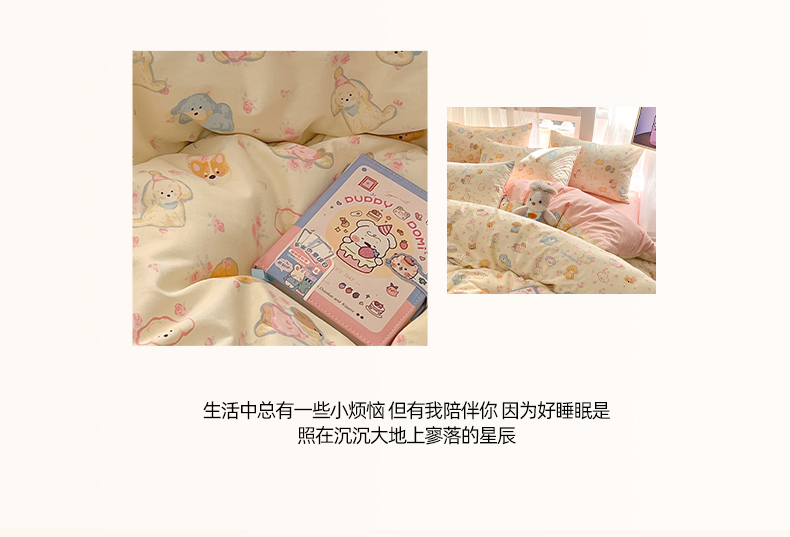 商品名称:吉象家纺 2025新款全棉斜纹印花四件套 狗狗家族米