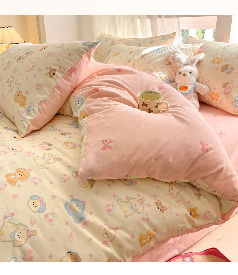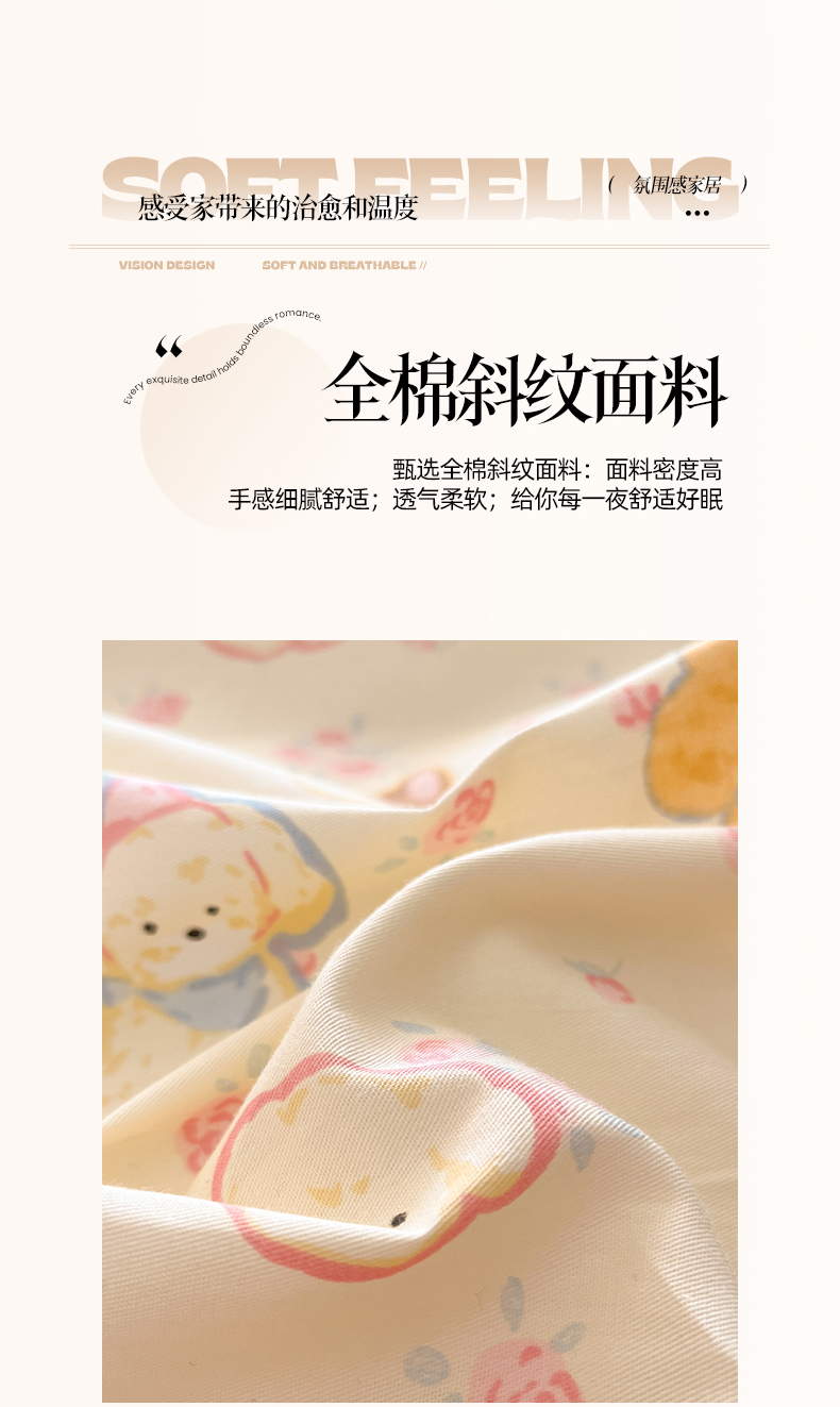 (总)吉象家纺 2025新款12868全棉印花单被套,蓝色泡芙狗,蘑菇小兔,奶油甜心熊,碎花狗狗,碎花小兔,爪爪会客厅