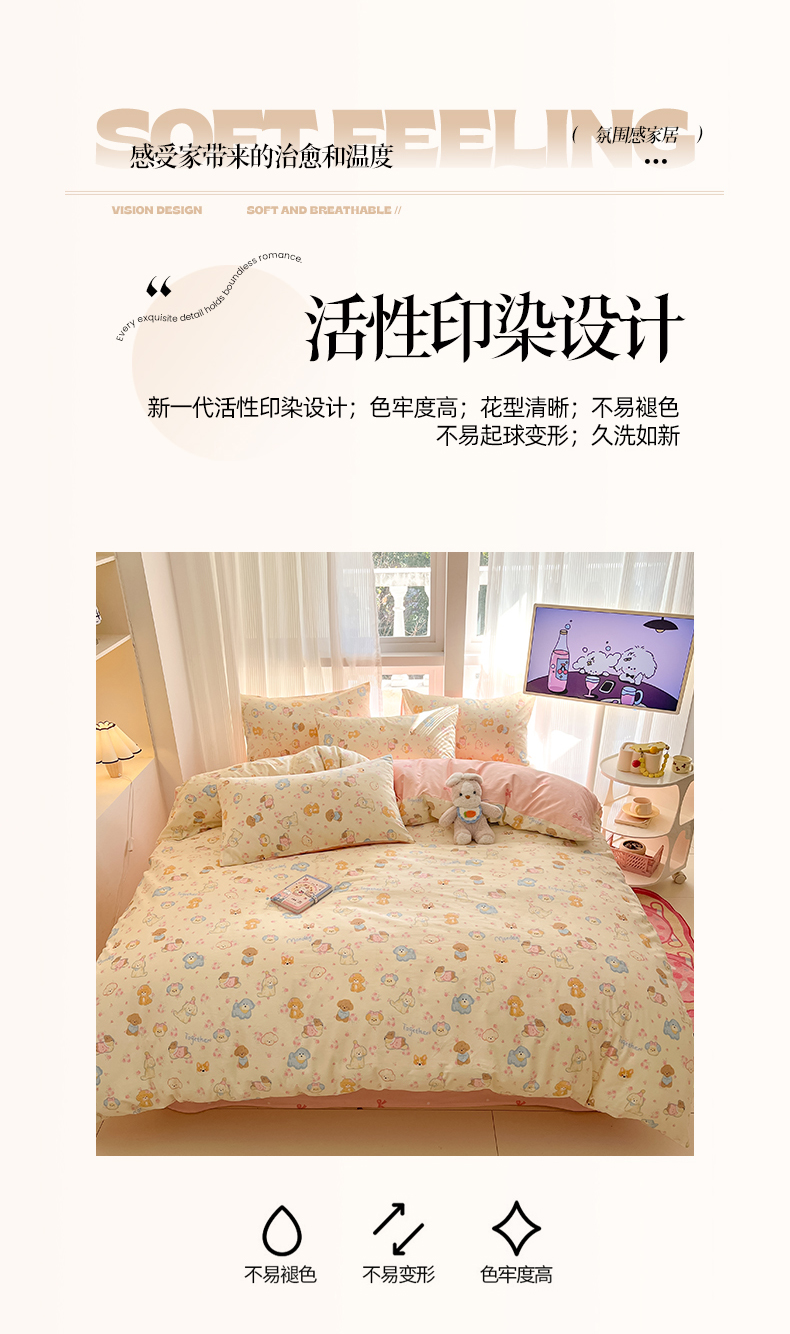 (总)吉象家纺 2026新款高支密全棉印花四件套,睡梦熊,布偶假期,彩虹木马,春游手记,点点小熊,度假恐龙,快乐小马,妙趣乐园,奶酪小可爱,秋日乐园,三小只,甜梦小精灵,童话花町,童年小事,温柔花朵熊,小小宇航员,星际仔仔,星星漫游记
