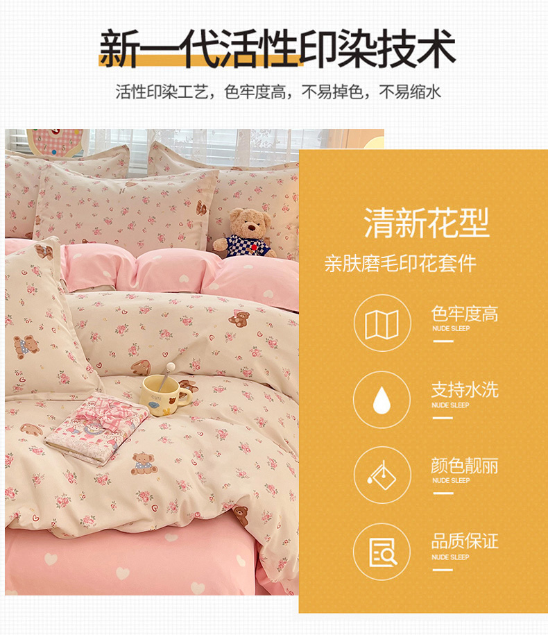 商品名称:世爵 2025新款磨毛印花单被套 花园熊宝