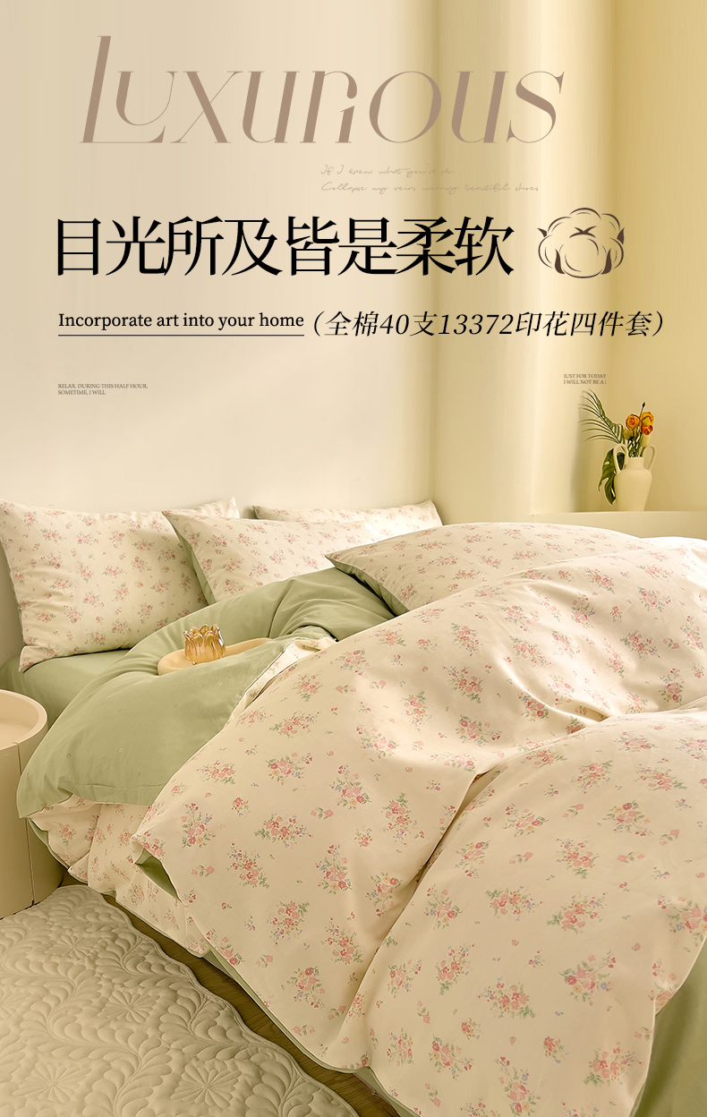 当前位置: 91家纺网 > 商品网购 > 床品套件 > 四件套 > 全棉普通四件套 > DoDo 兜兜 【 可定制尺寸】2025新款全棉40支13372印花四件套 朵拾