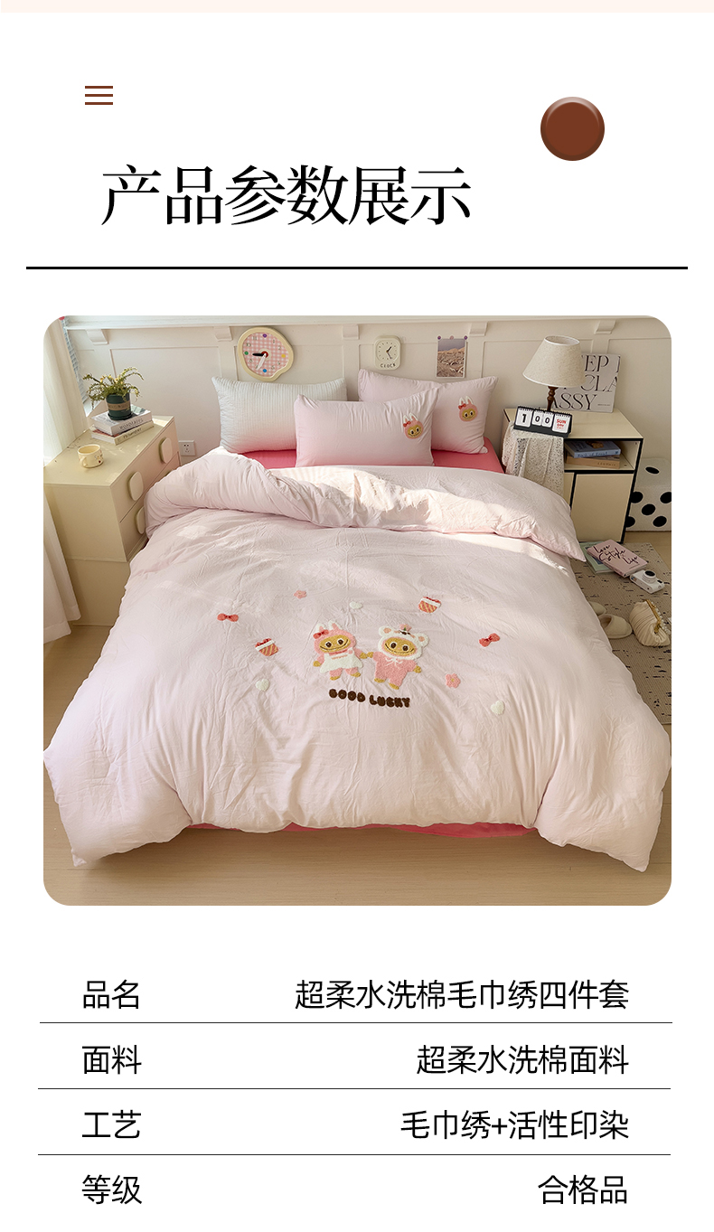 当前位置: 91家纺网 > 商品网购 > 床品套件 > 四件套 > 水洗棉四件套 > 水墨江南 2025新款超柔水洗棉毛巾绣系列四件套 布娃娃