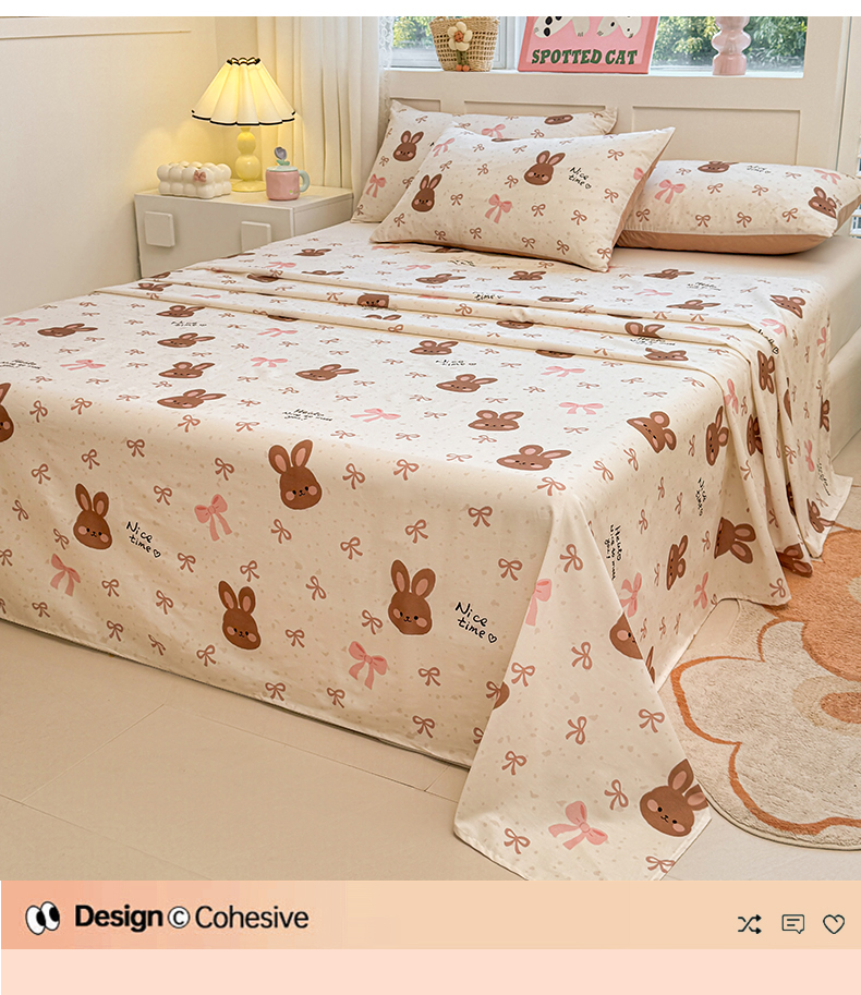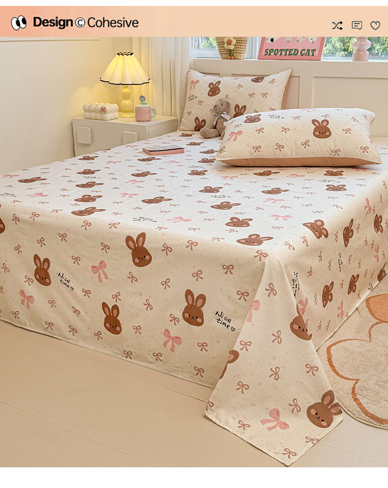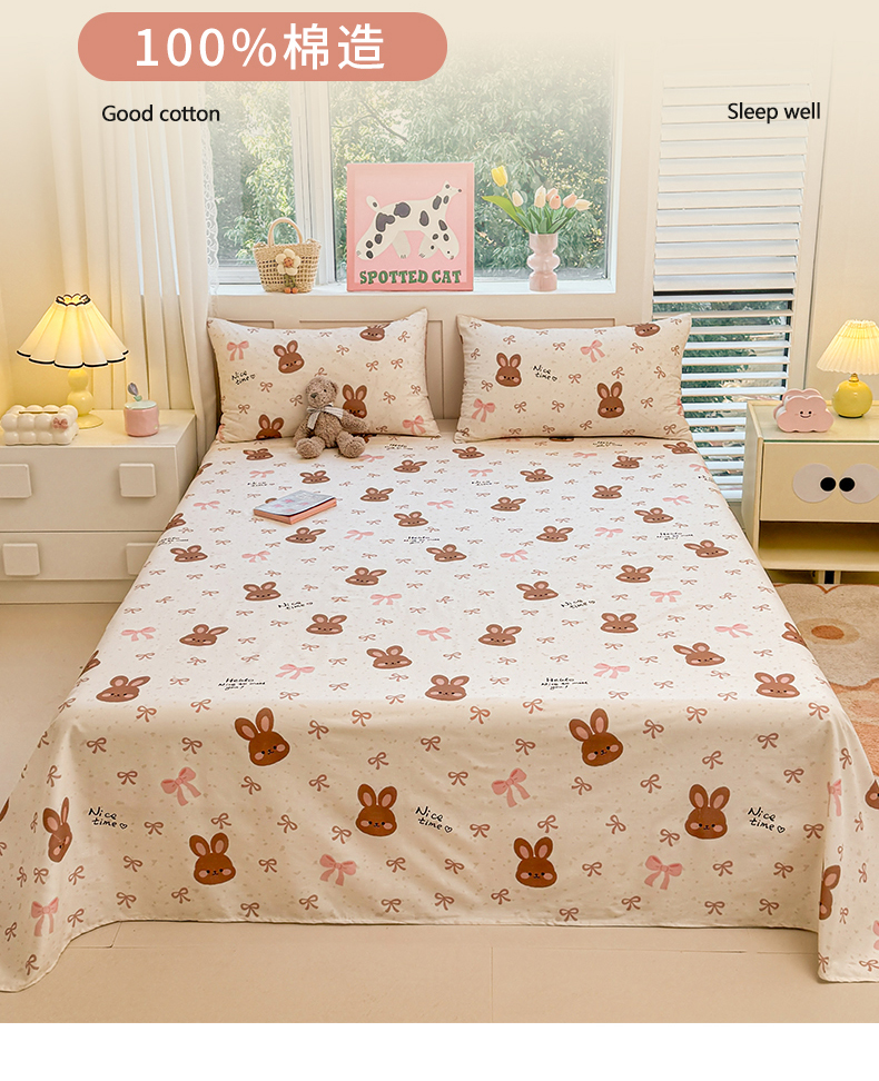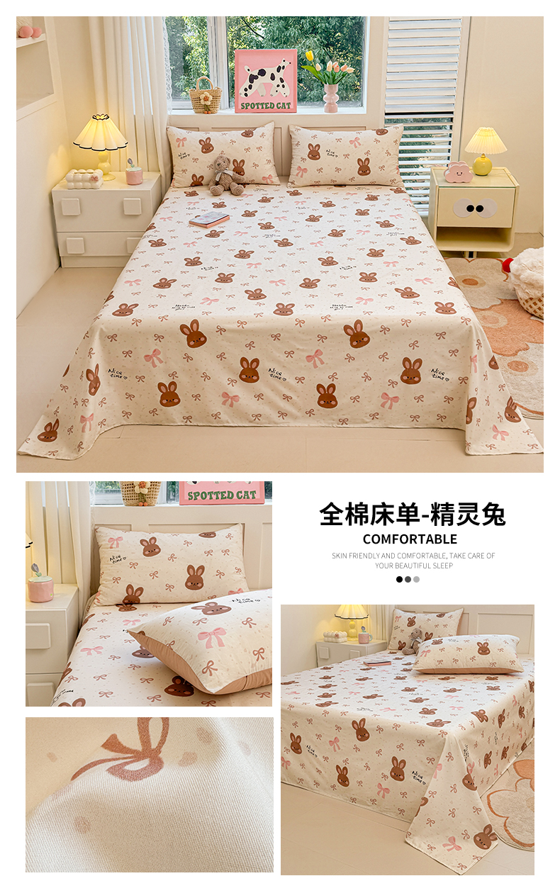 • 91家纺网 家纺一手货源 找家纺 雯豆2025春夏新款全棉床单三件套纯棉床罩小清新印花床单 全棉床单-精灵兔