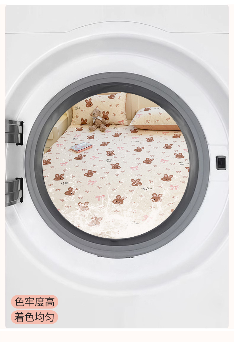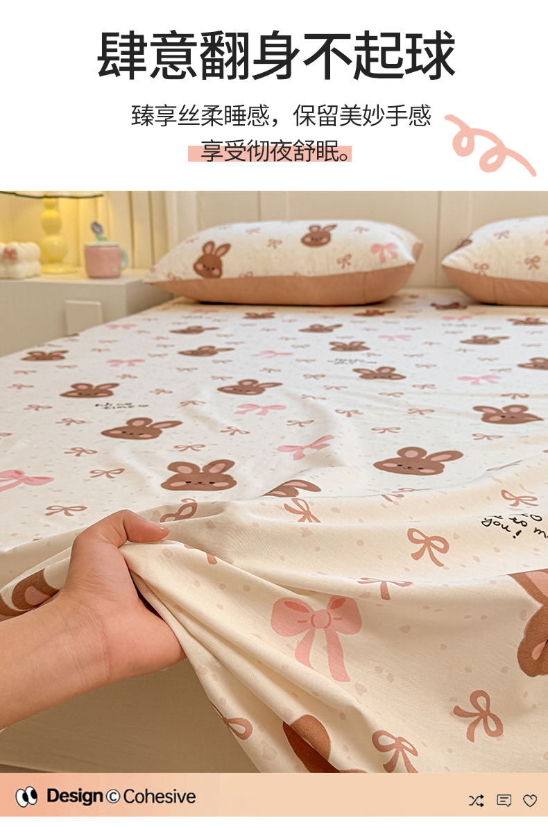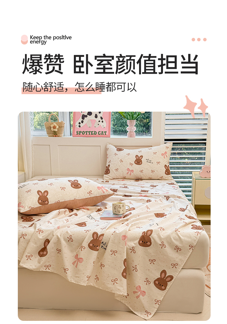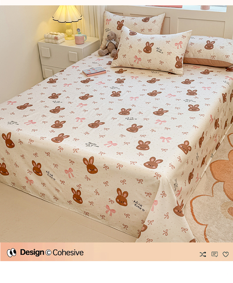 • 91家纺网 家纺一手货源 找家纺 雯豆2025春夏新款全棉床单三件套纯棉床罩小清新印花床单 全棉床单-精灵兔