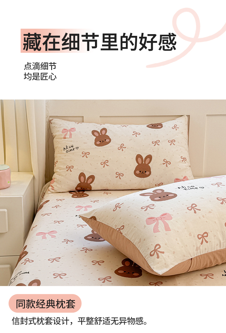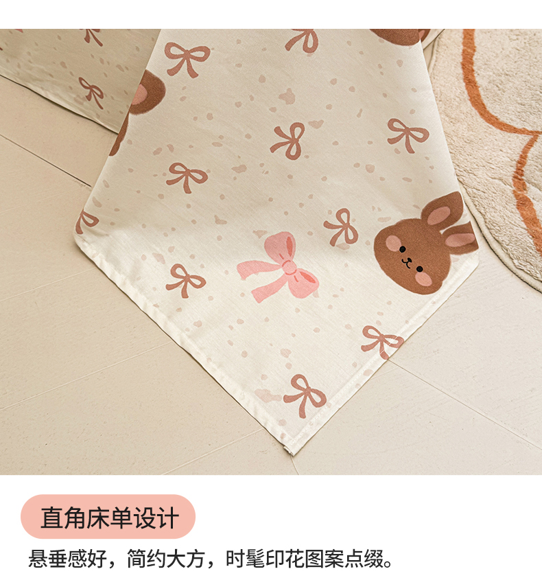 当前位置: 91家纺网 > 商品网购 > 床上用品 > 床单 > 雯豆2025春夏新款全棉床单三件套纯棉床罩小清新印花床单 全棉床单-精灵兔