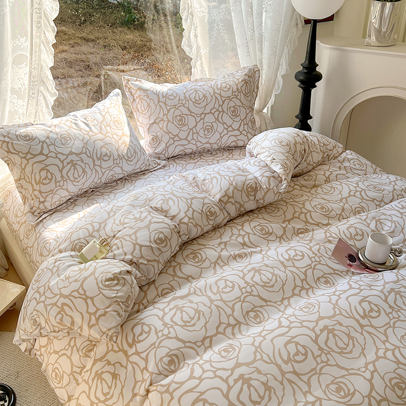 商品名称:耀悦家纺 2025新款水洗真丝四件套简约印花小清新欧式ins新中式冰丝四件套 玫瑰风情