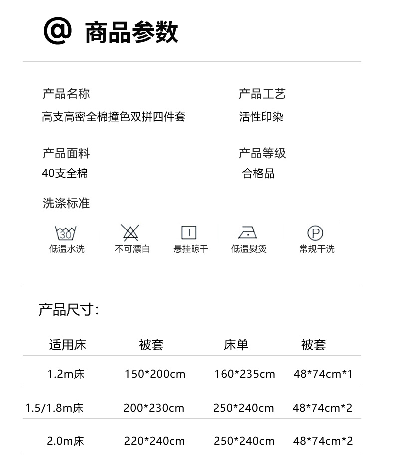 商品名称:(总)眠博士 2025新款40支高支高密全棉撞色双拼四件套