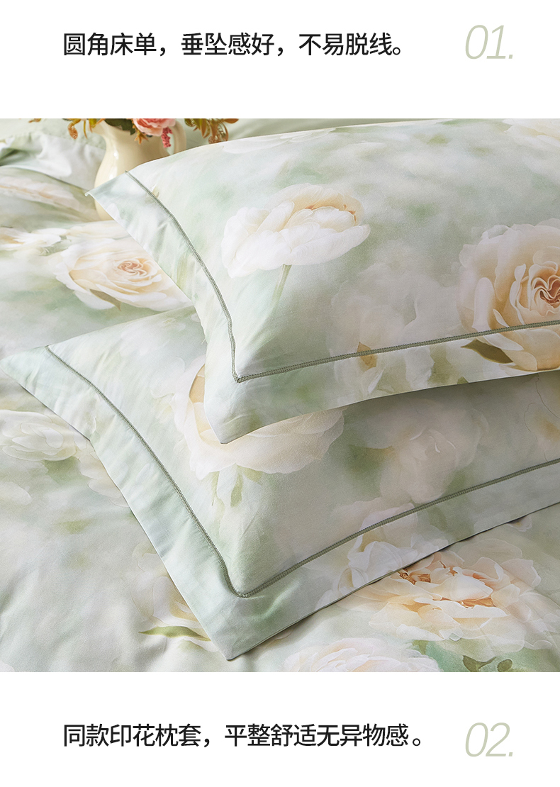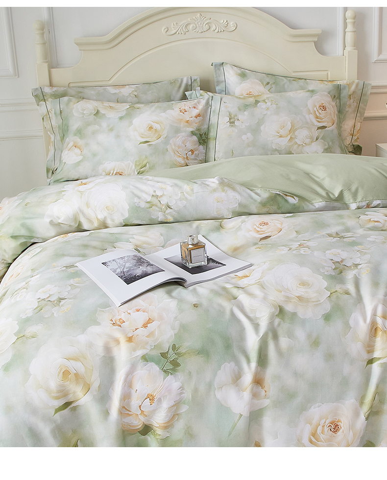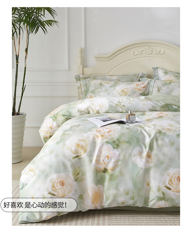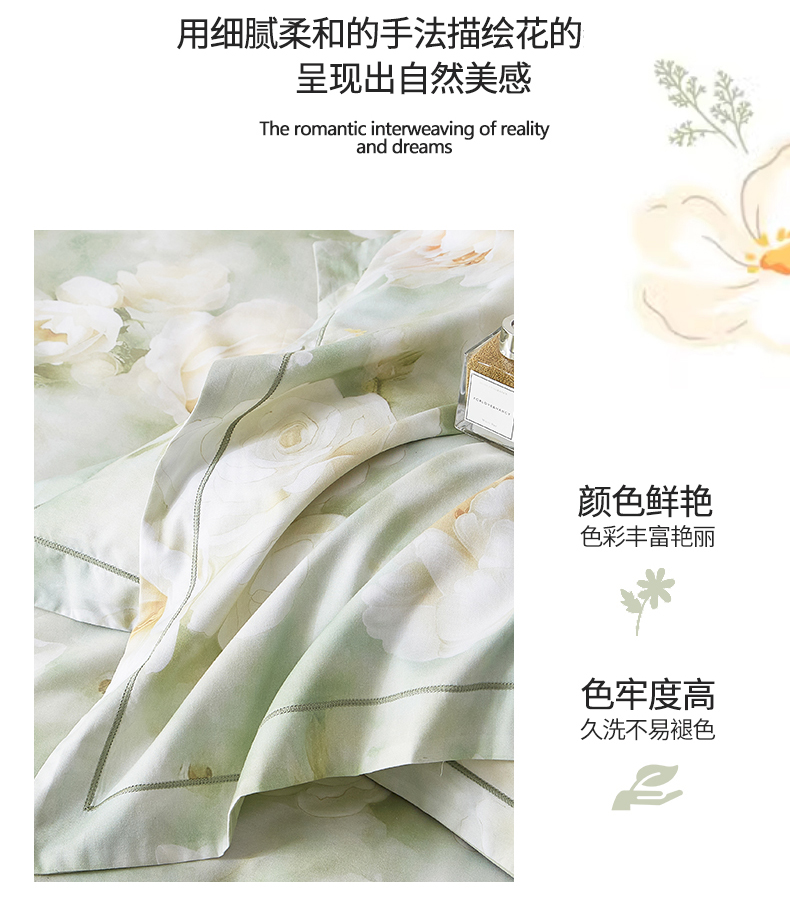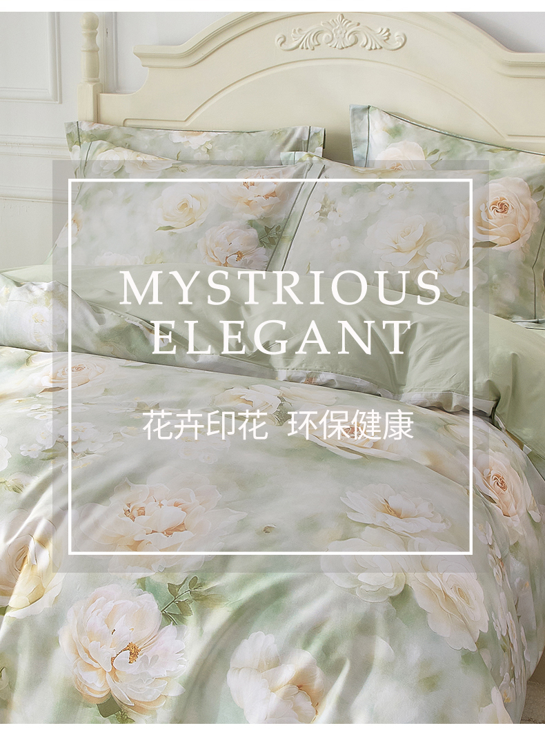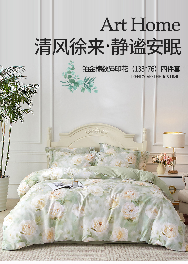 商品名称:曼秀琳 2025新款铂金棉数码印花四件套(全棉133*76) 墨雨云间-绿