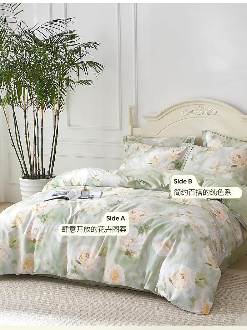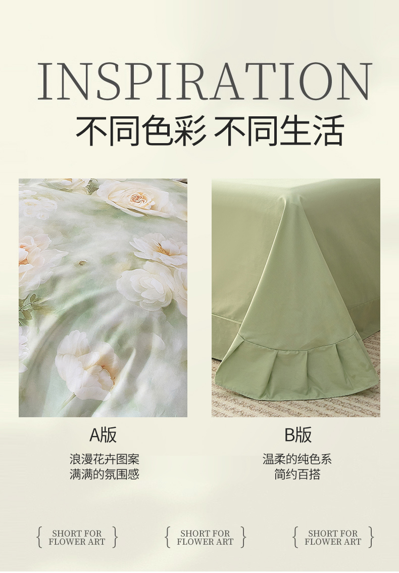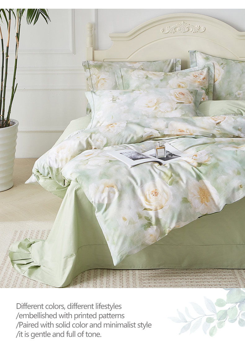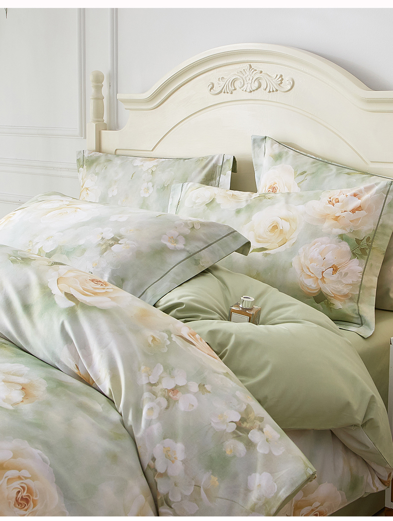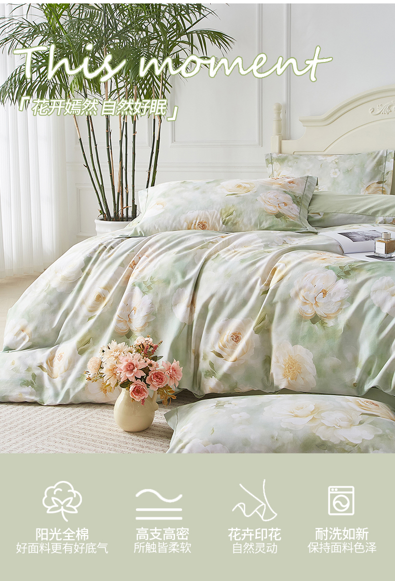 曼秀琳 2025新款铂金棉数码印花四件套(全棉133*76) 墨雨云间-绿