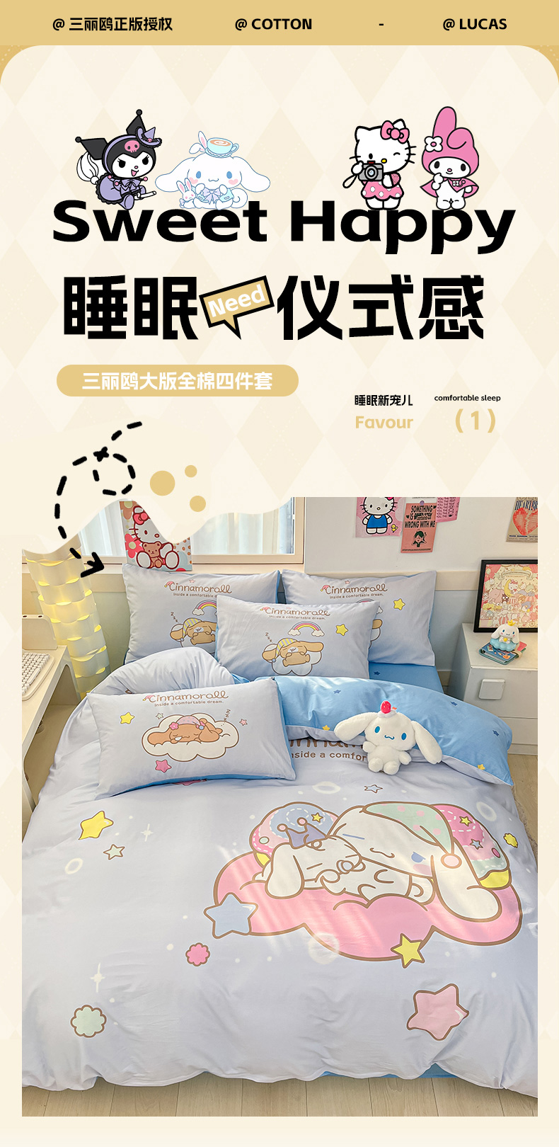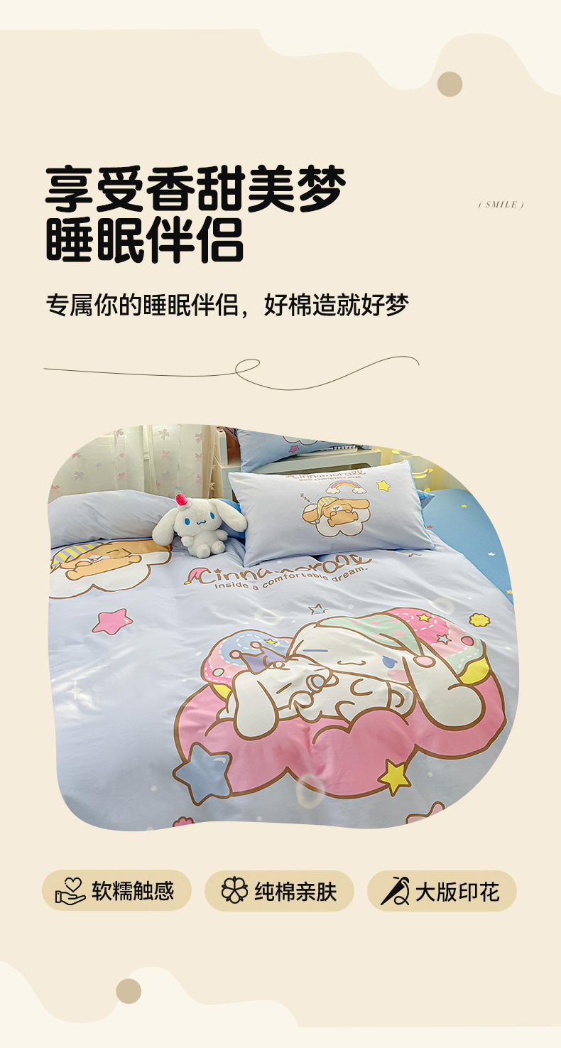 当前位置: 91家纺网 > 商品网购 > 床品套件 > 四件套 > 全棉普通四件套 > 博雅 2025新款三丽鸥大版印花全棉四件套专版花型 全棉大版(普通款口袋枕)星星玉桂狗